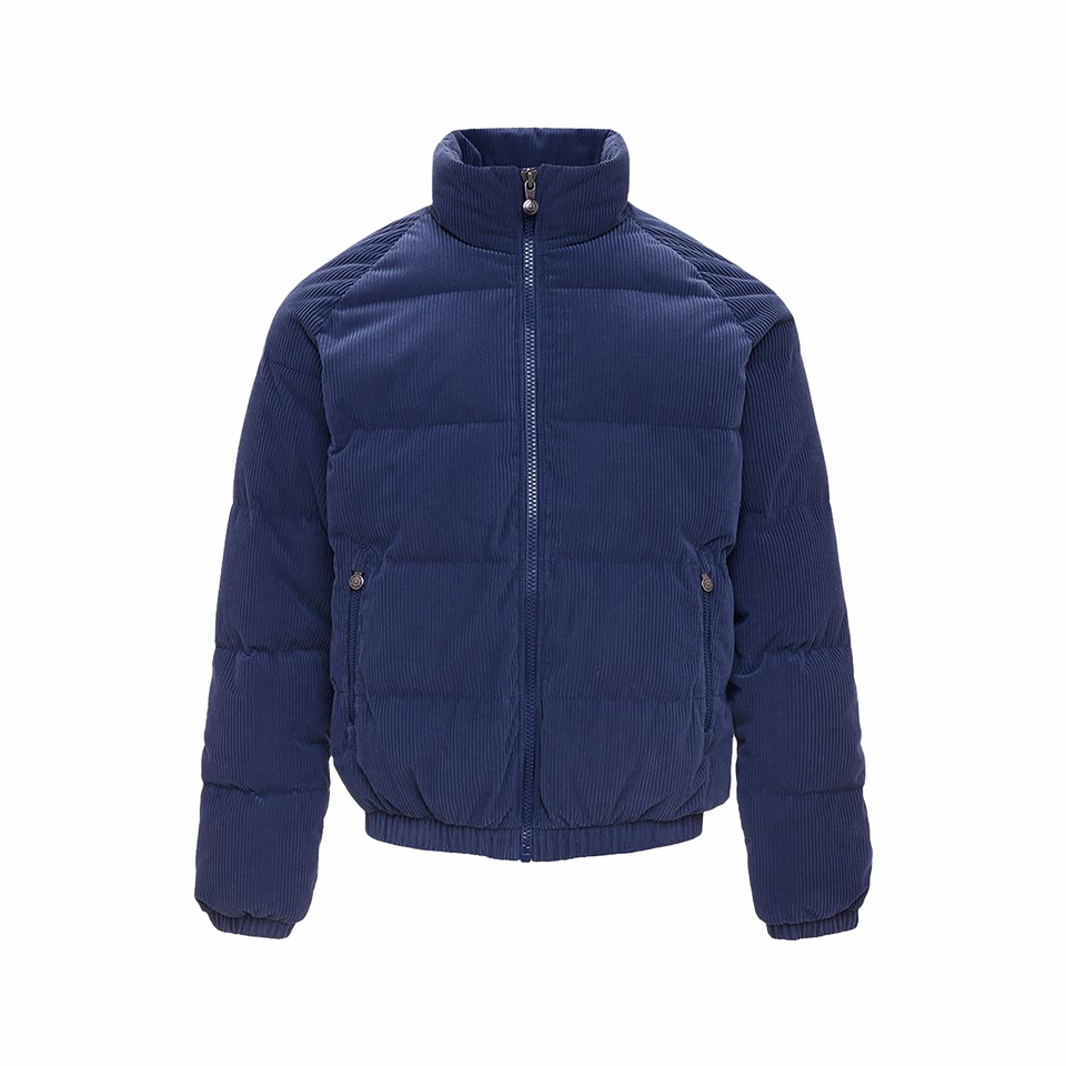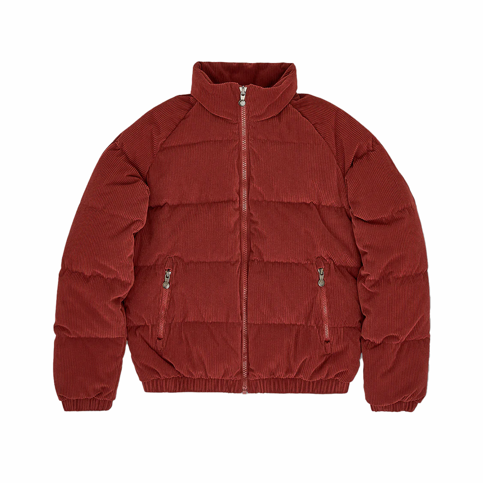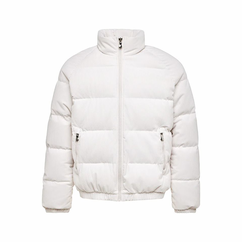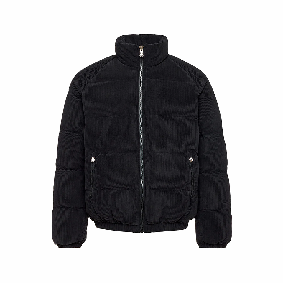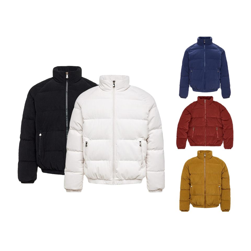 เสื้อแจ็คเก็ตขนห่านแบบกำหนดเองปี 2026 แจ็คเก็ตพัฟเฟอร์กำมะหยี่คอร์ดูรอยสไตล์วินเทจสำหรับผู้ชาย คุณภาพสูง