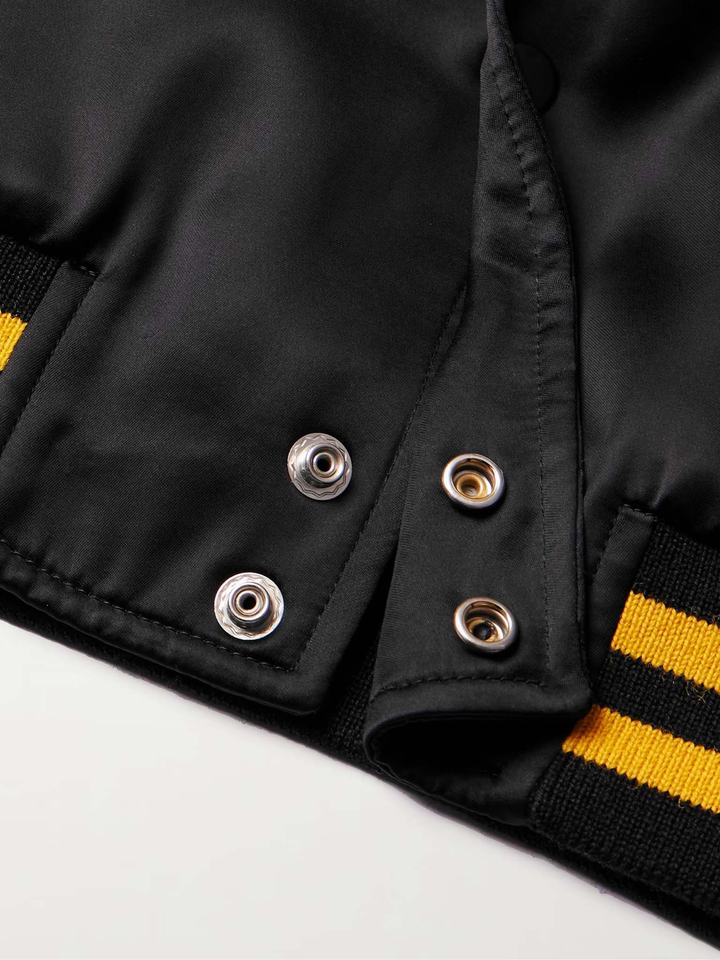 แจ็คเก็ตเบสบอลผู้ชายแบบมีปกปักลาย ปี 2026 ผลิตตามสั่ง (OEM) ผ้าซาติน แขนเสื้อแบบมีปก คุณภาพสูง สไตล์ลำลองแนววิทยาลัย/สตรีท