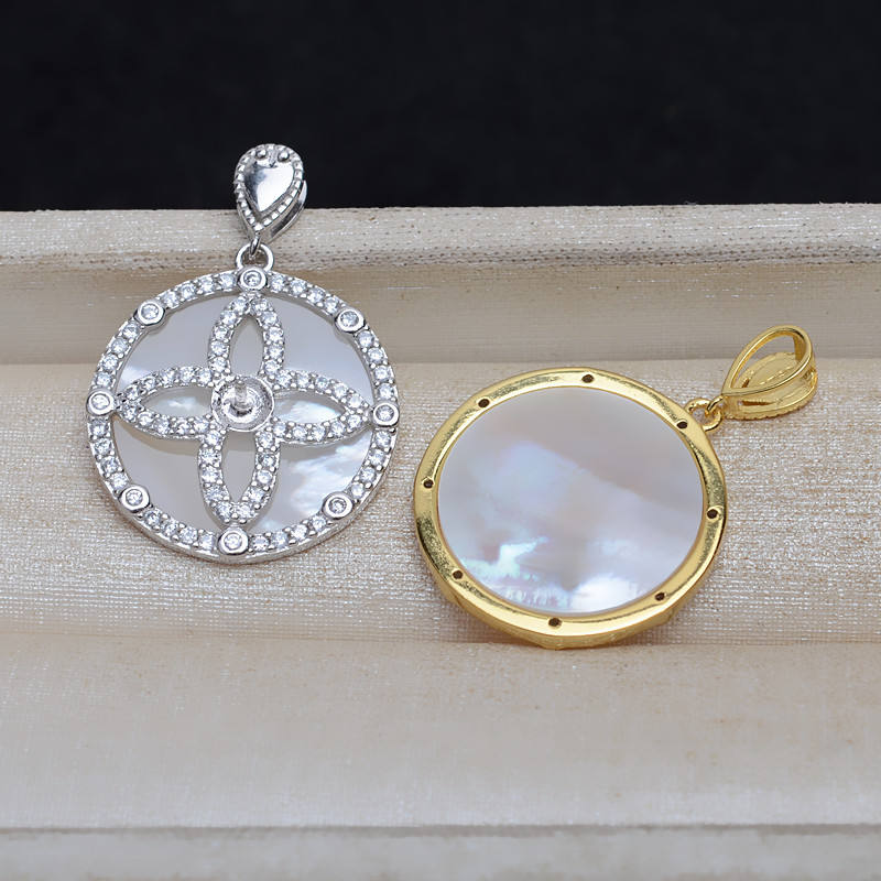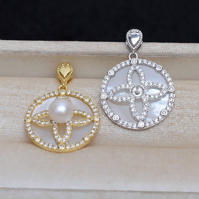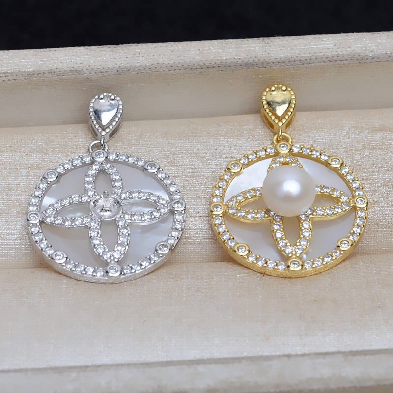 อุปกรณ์ทำจี้เงินแท้ S925 ปี 2026 แบบ DIY ปรับแต่งได้ ตัวจี้เปล่าขนาดใหญ่ ฝังเปลือกหอย สำหรับไข่มุก 5-7 เม็ด อะไหล่เครื่องประดับ