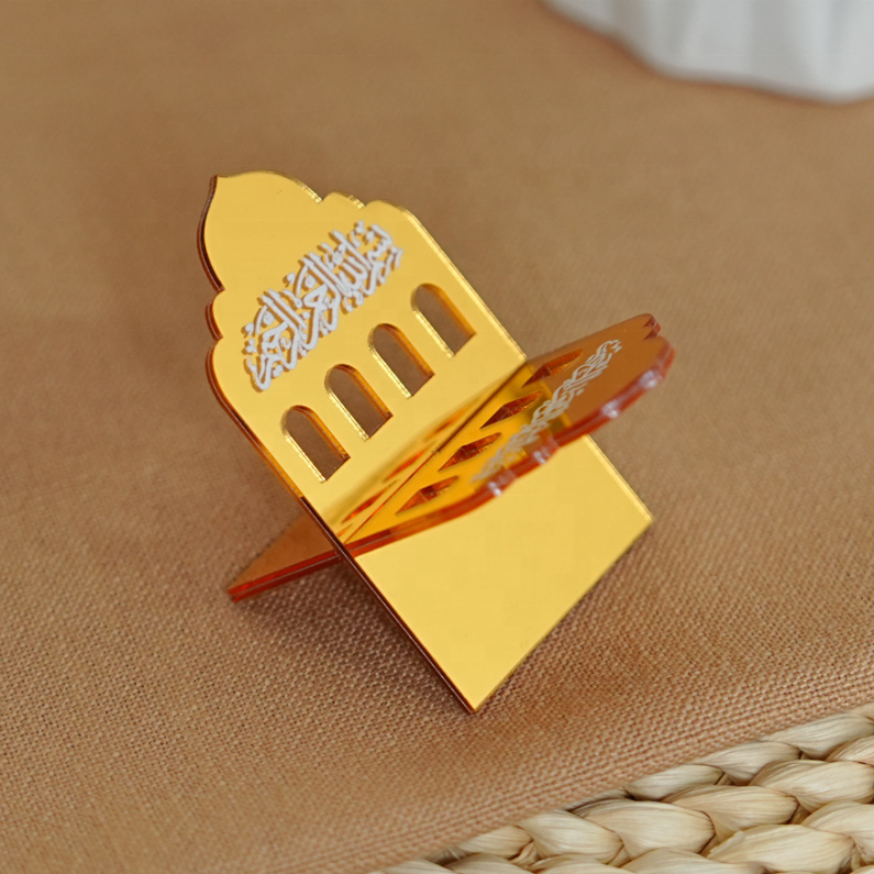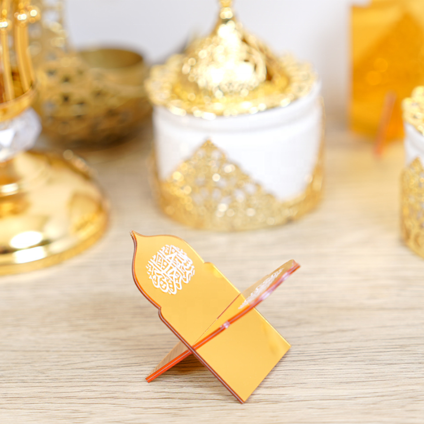 ที่วางอินทผลัมสำหรับตกแต่งโต๊ะรอมฎอน ปี 2026 วัสดุอะคริลิคสีทองสวยงาม พร้อมลายอักษรอาหรับสำหรับงานปาร์ตี้รอมฎอน คารีม