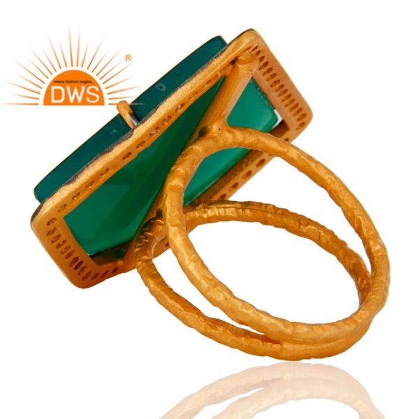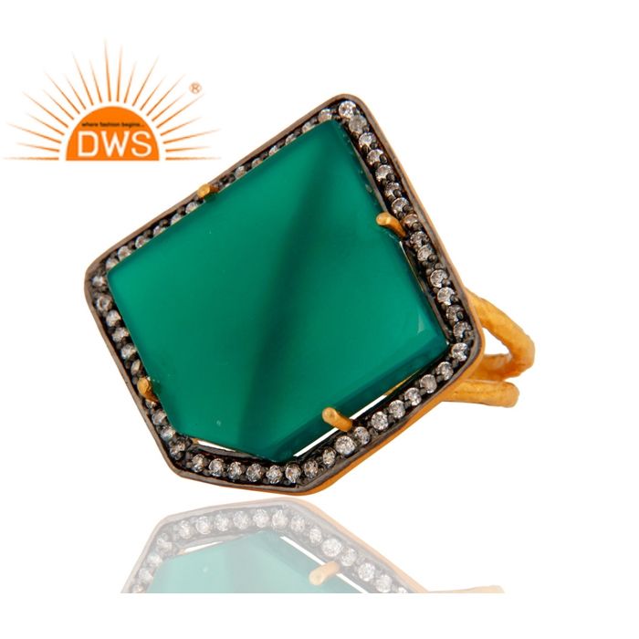 แหวนเงินดีไซน์ปี 2026 ประดับเพชร CZ และพลอยออนิกซ์สีเขียว ผู้ผลิตเครื่องประดับ แหวนเงินชุบทอง 18k ผู้จัดจำหน่ายเครื่องประดับเงิน