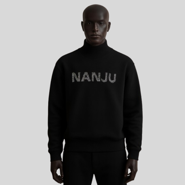 เสื้อสเวตเชิ้ตคอเต่าแบบยูนิเซ็กซ์ทรงโอเวอร์ไซส์ ปักลายด้วยคริสตัล ผ้าฝ้ายเฟรนช์เทอร์รี่คุณภาพสูง 100% งานออกแบบโลโก้สั่งทำพิเศษ ปี 2026 แบบสองด้านใส่ได้