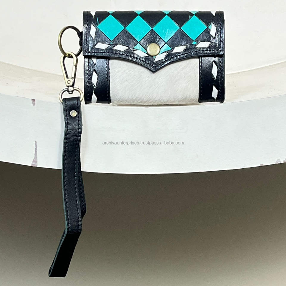 กระเป๋าใส่เหรียญหนังวัวแท้ลายตารางหมากรุก งานฝีมือดีไซเนอร์ ปี 2026 หนังมีขนสไตล์ตะวันตก สำหรับผู้หญิง ใส่เหรียญและกุญแจ