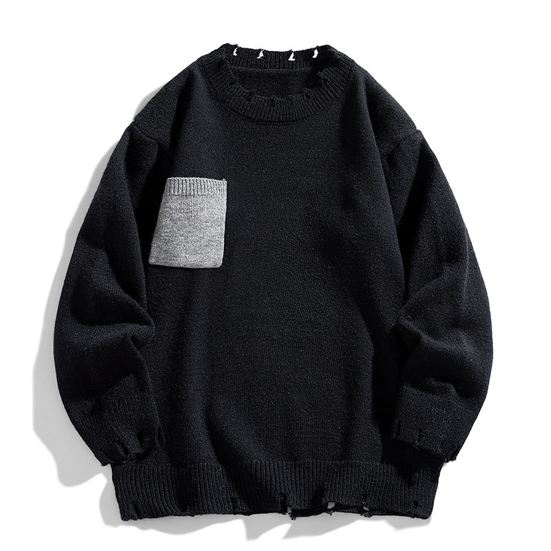 สเวตเตอร์2026ใส่ได้ทั้งชายและหญิงสำหรับฤดูใบไม้ร่วงและฤดูหนาวเสื้อสเวตเตอร์ทรงหลวมคุณภาพสูงเนื้อเสื้อยืดยาวฮิปฮอปขอบหยักสำหรับผู้ชาย