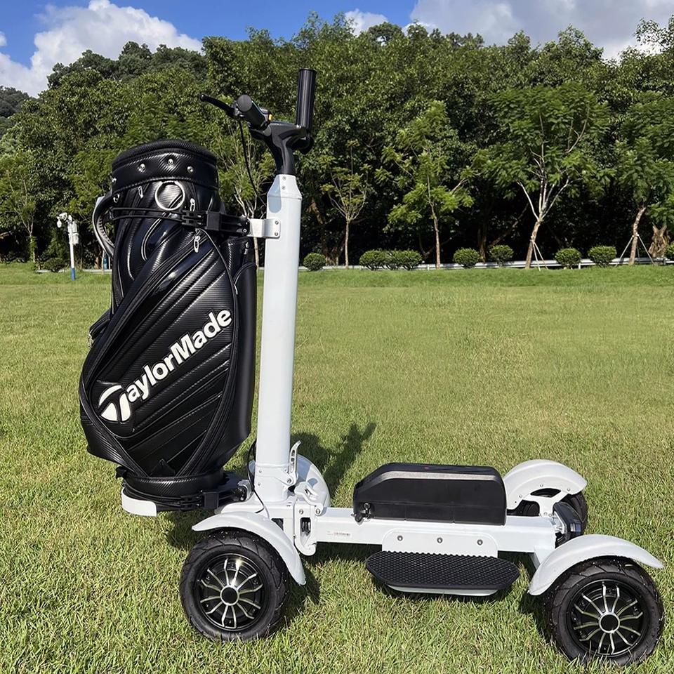 รถกอล์ฟไฟฟ้า 4 ล้อ ปี 2026 แบบที่นั่งเดี่ยว แบตเตอรี่ลิเธียม 2000 วัตต์ พร้อมกระเป๋าใส่ อุปกรณ์เสริมสำหรับรถกอล์ฟ