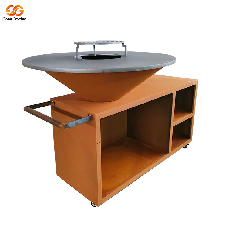 เตาบาร์บีคิวเหล็กคอร์เทนขนาดใหญ่รุ่นปี 2026 สำหรับย่างด้วยฟืน พร้อมรีโมทคอนโทรลและปรับความสูงได้ สำหรับครัวกลางแจ้ง