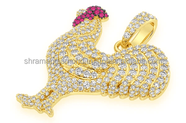 จี้เพชรโมอิสซาไนต์รูปไก่ชนพันธุ์พิเศษ คุณภาพพรีเมียม ระดับ D Color VVS ชุบทองคำแท้ 14K รุ่นปี 2026 สำหรับงานปาร์ตี้ ของขวัญสำหรับผู้ชายและผู้หญิง