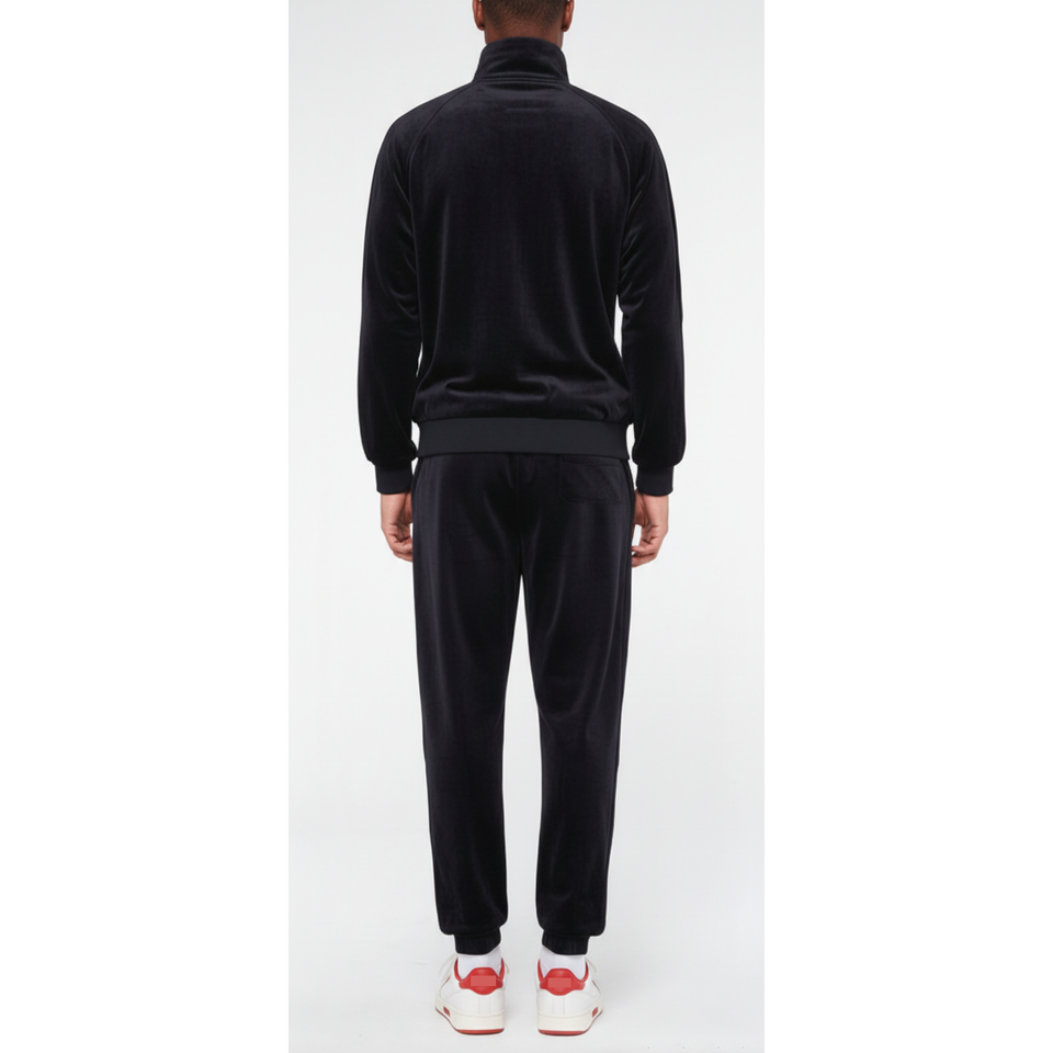 ชุดวอร์มกำมะหยี่แบบกำหนดเองสำหรับผู้ชาย ฤดูหนาว ปี 2026 ชุดเซ็ต 2 ชิ้น กางเกงจ็อกเกอร์ผ้ากำมะหยี่สีดำ พร้อมเชือกผูกเอว ขายส่ง