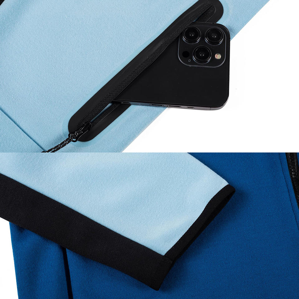 ชุดวอร์มเทคฟลีซผู้ชายแบบกำหนดโลโก้เองได้ ปี 2026 ชุด 2 ชิ้น เสื้อฮู้ดดี้และกางเกงขายาวสำหรับวิ่ง ชุดวอร์มสำหรับผู้ชาย