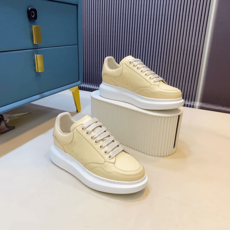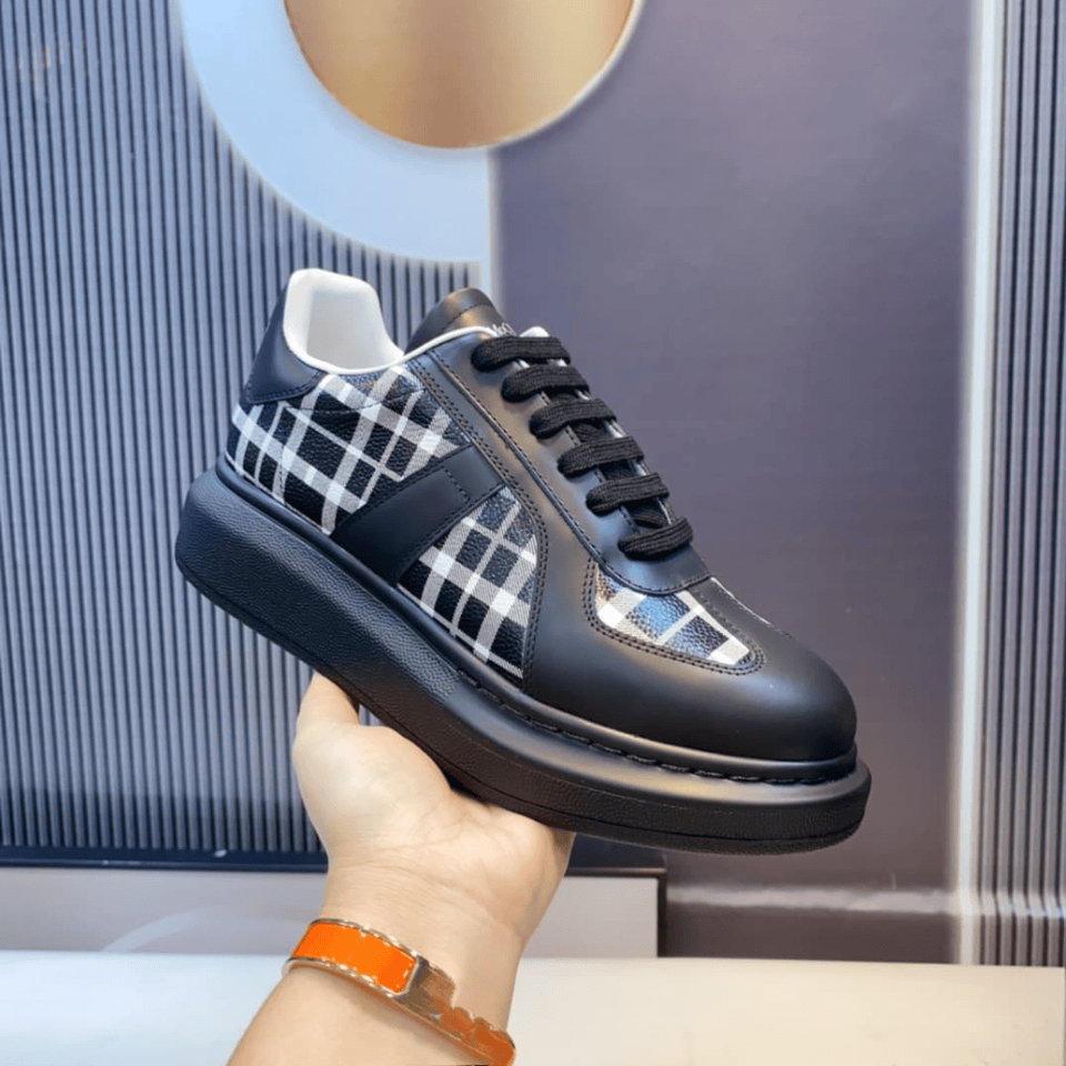เทรนด์แฟชั่นปี 2026 รองเท้าผ้าใบสไตล์เรโทรทรงโอเวอร์ไซส์ หนังแท้ ลายสก็อต ผูกเชือก น้ำหนักเบา พื้นหนา Mc.Queen