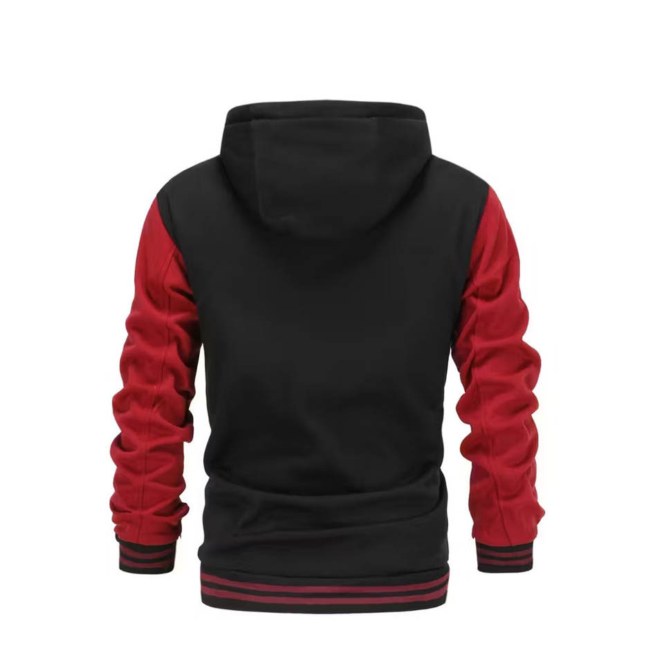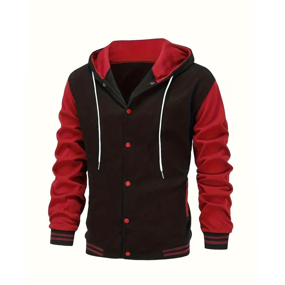 แจ็คเก็ตเบสบอลสไตล์ลำลองสำหรับฤดูหนาว ปี 2026 แฟชั่นแขนยาวมีฮู้ดติดกระดุมพร้อมเชือกผูกสำหรับผู้ชาย ลายตัวอักษรแบบ Letterman Varsity