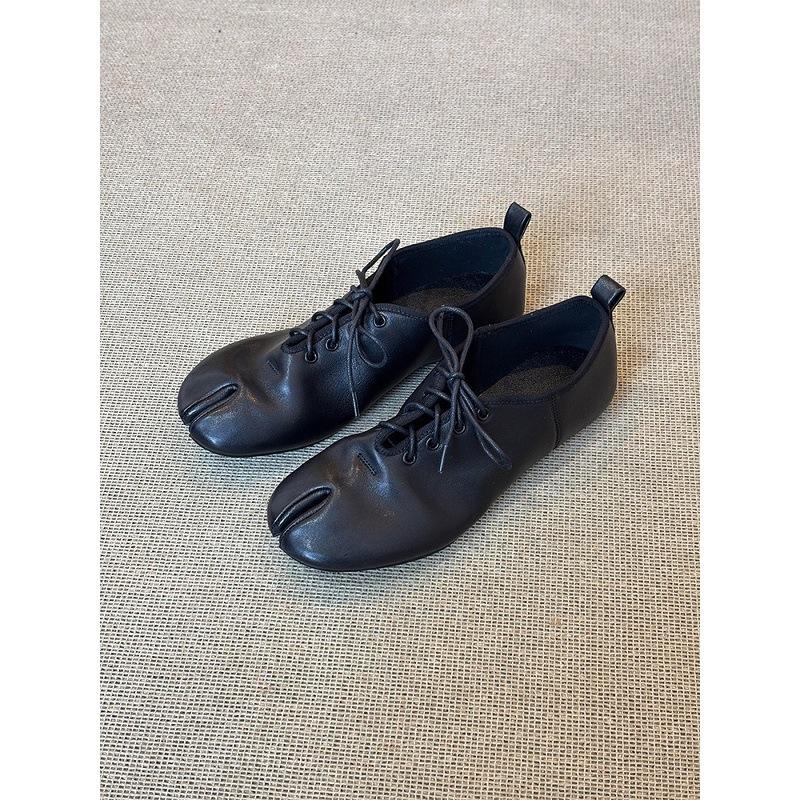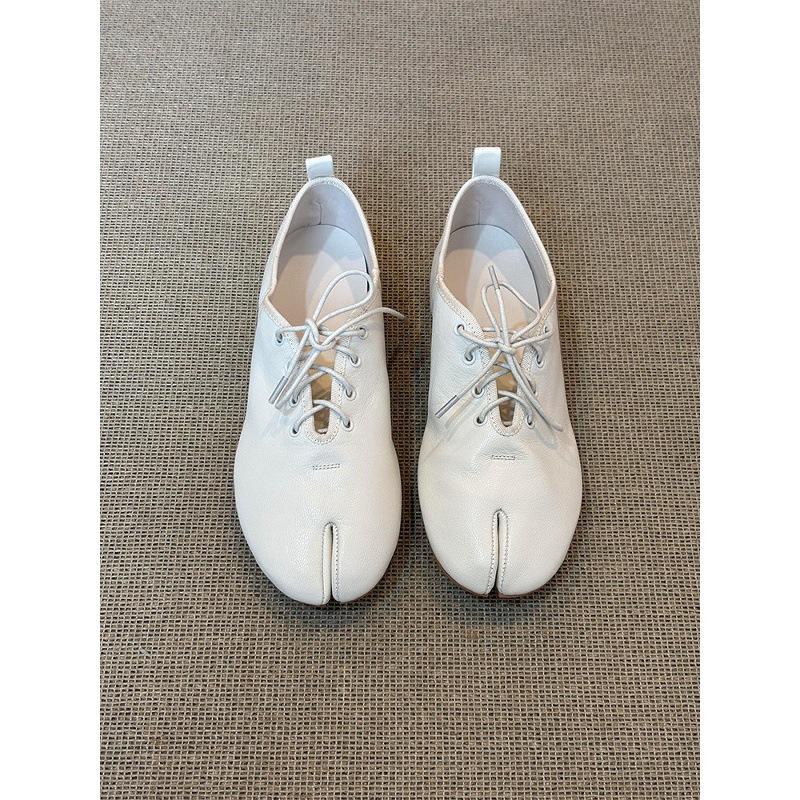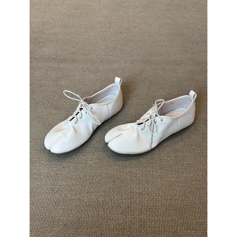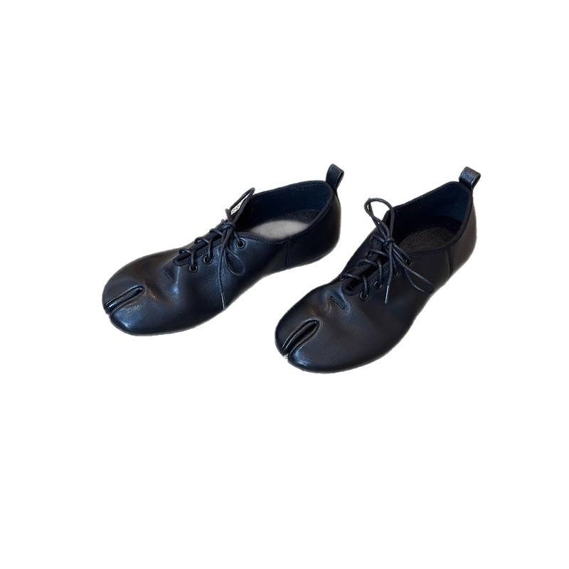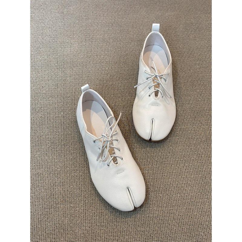 รองเท้าหนังแกะแบบแยกนิ้วเท้าสไตล์ฝรั่งเศสปี 2026 สำหรับผู้หญิง รองเท้าหนังลำลองแบบผูกเชือก ดีไซน์เฉพาะกลุ่ม แนววรรณกรรม สวมใส่สบาย