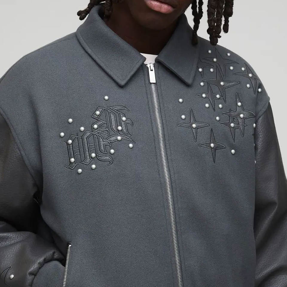 แจ็คเก็ตหนังผู้ชายกันน้ำลายการ์ตูนพิมพ์ลายปี 2026 ดีไซน์ปรับแต่งได้ สีพื้นเรียบ พร้อมตัวเลือกโลโก้ด้านหน้า