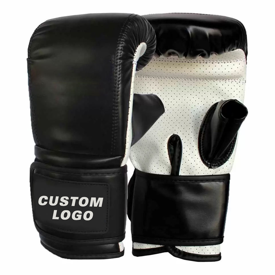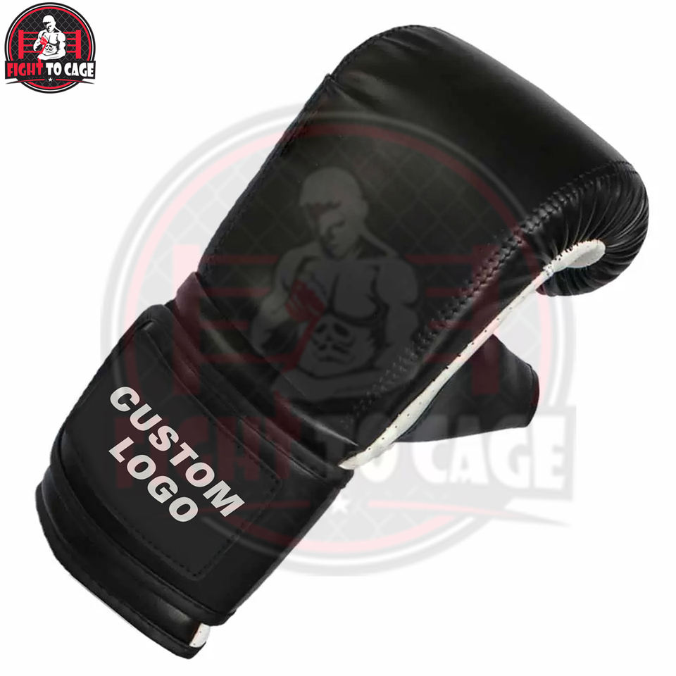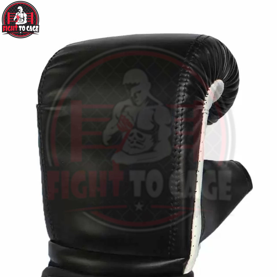 ถุงมือชกมวยไทยแบบเต็มสีดำขาว ปี 2026 สวมใส่สบาย บริการ OEM ปรับแต่งได้ หนัง PU ทนทานต่อแรงกระแทก