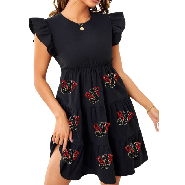 ชุดเดรสลำลองสำหรับผู้หญิงสำหรับวันแข่งขันกีฬาปี 2026 ตกแต่งด้วยเลื่อม ปักลาย แขนสั้น ดีไซน์หรูหรา ความยาวระดับเข่า เอวทรงธรรมชาติ กระโปรงทรงระบาย