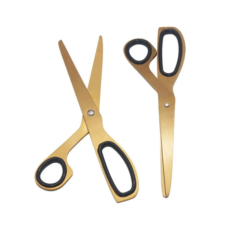 กรรไกรสำนักงานแบบอสมมาตรสีทอง ปี 2026 พร้อมใบมีดสแตนเลสขอบเรียบ สำหรับตัดริบบิ้น