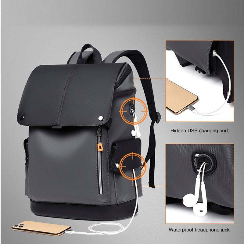 กระเป๋าเป้สะพายหลังใส่แล็ปท็อปหนัง PU กันน้ำสำหรับผู้ชาย