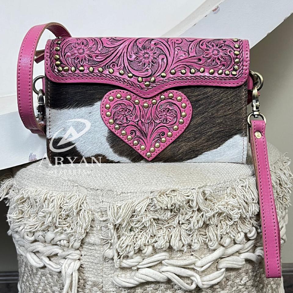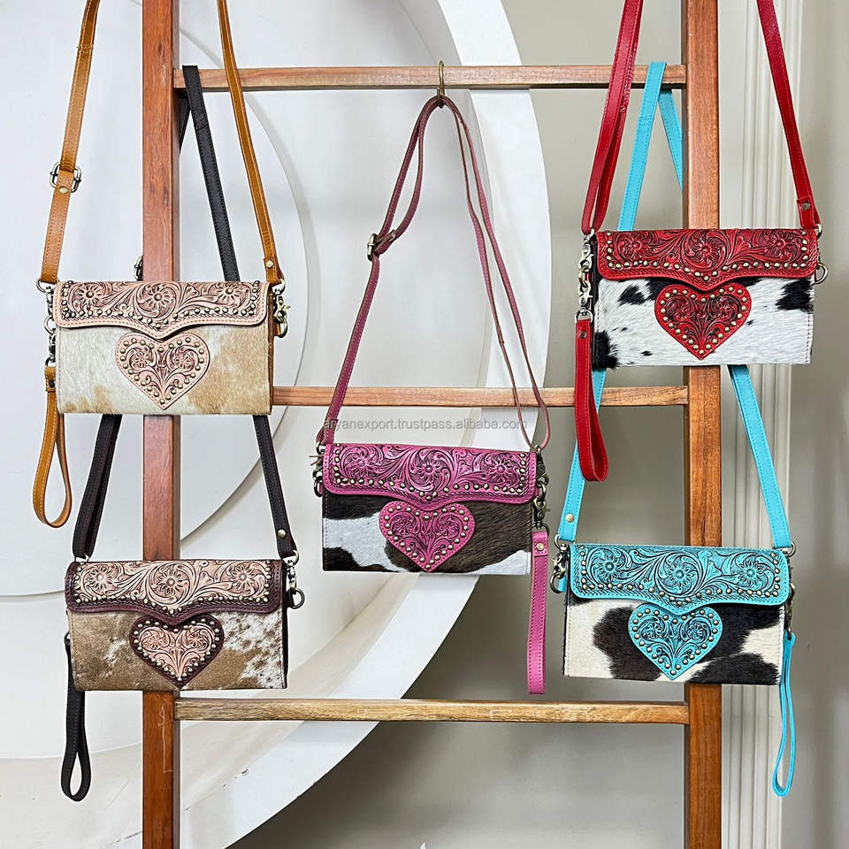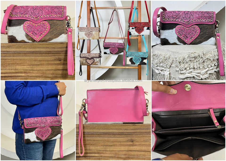กระเป๋าคลัทช์หนังวัวแท้ลายหัวใจสไตล์ตะวันตก ปี 2026 แบบสะพายข้าง สายปรับได้ เหมาะสำหรับผู้หญิง
