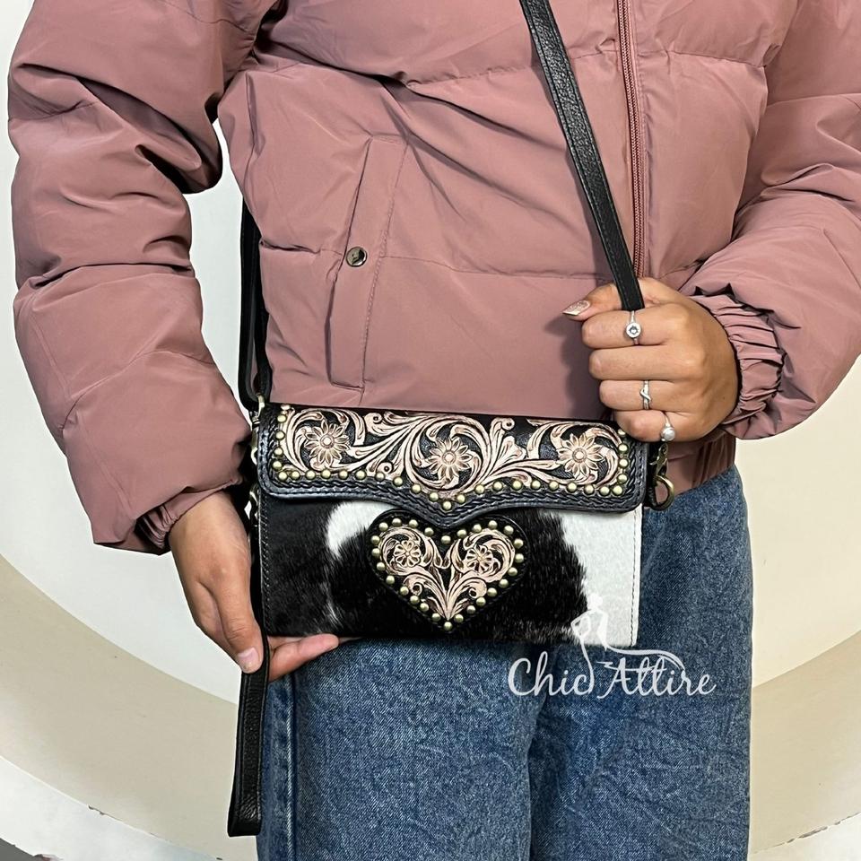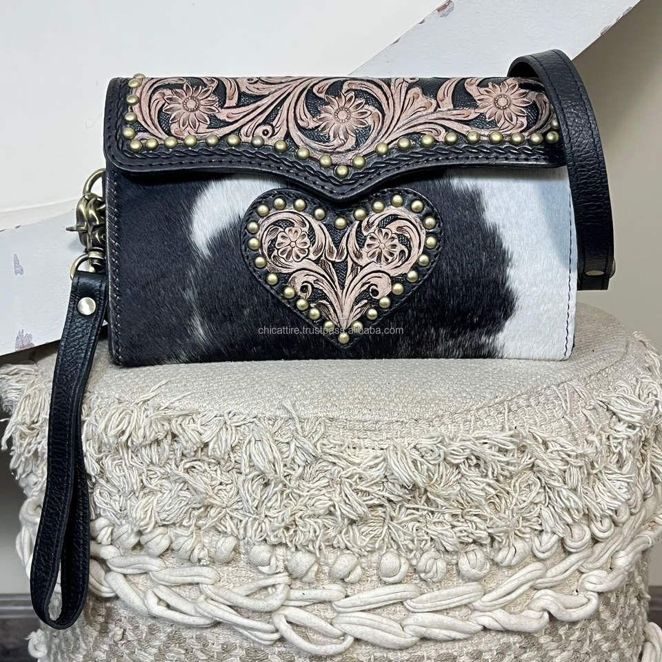 กระเป๋าหนังแท้ทำมือลายดอกไม้ประดับหมุด สไตล์คาวบอยตะวันตกสุดหรู รุ่นมินิ สะพายข้าง ปี 2026