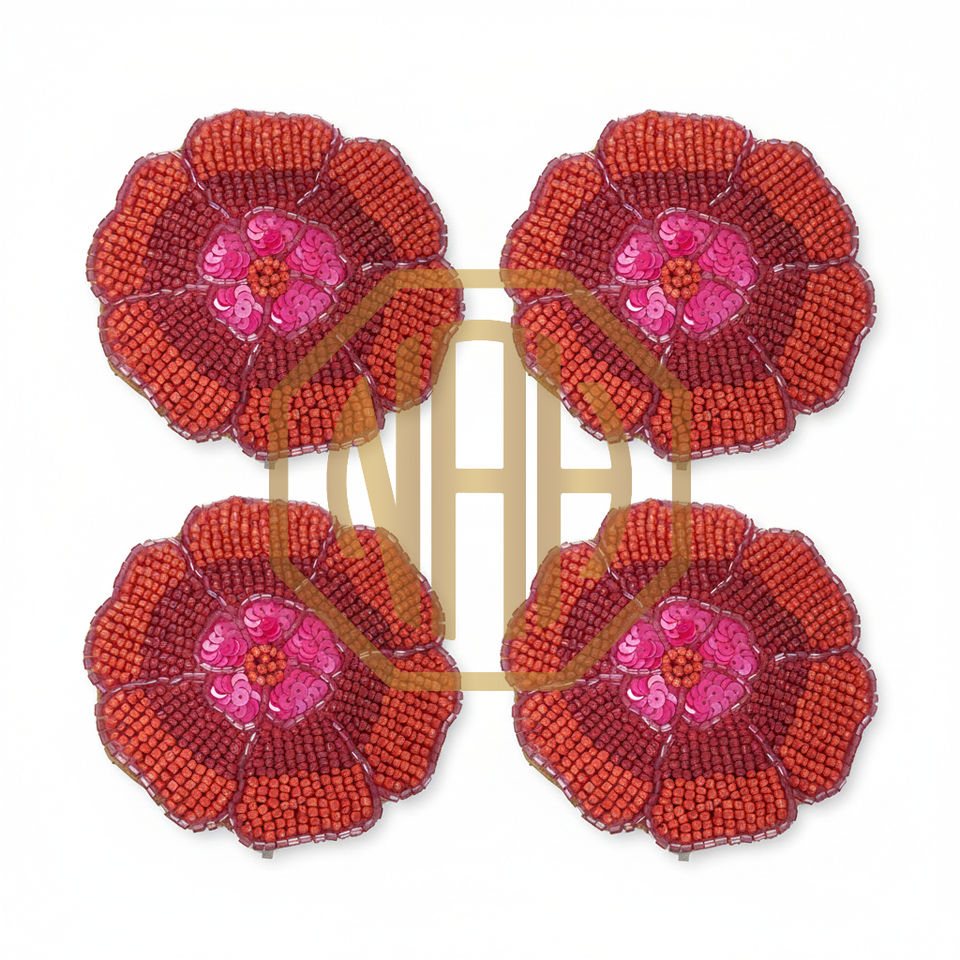 แผ่นรองแก้วทำมือปี 2026 ประดับด้วยลูกปัดเม็ดเล็ก รูปดอกไม้และใบไม้ หลากสีสัน ดีไซน์ไม่ซ้ำใคร เหมาะสำหรับตกแต่งในเทศกาลและเป็นของขวัญ