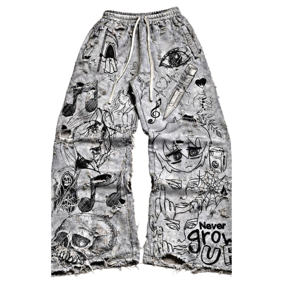 กางเกงวอร์มขาบานทรงโอเวอร์ไซส์ผ้าฝ้ายหนานุ่ม ปี 2026 สำหรับผู้หญิง สไตล์วินเทจ ล้างทำสีซีด แต่งลายปักโลโก้ ทรงหลวม