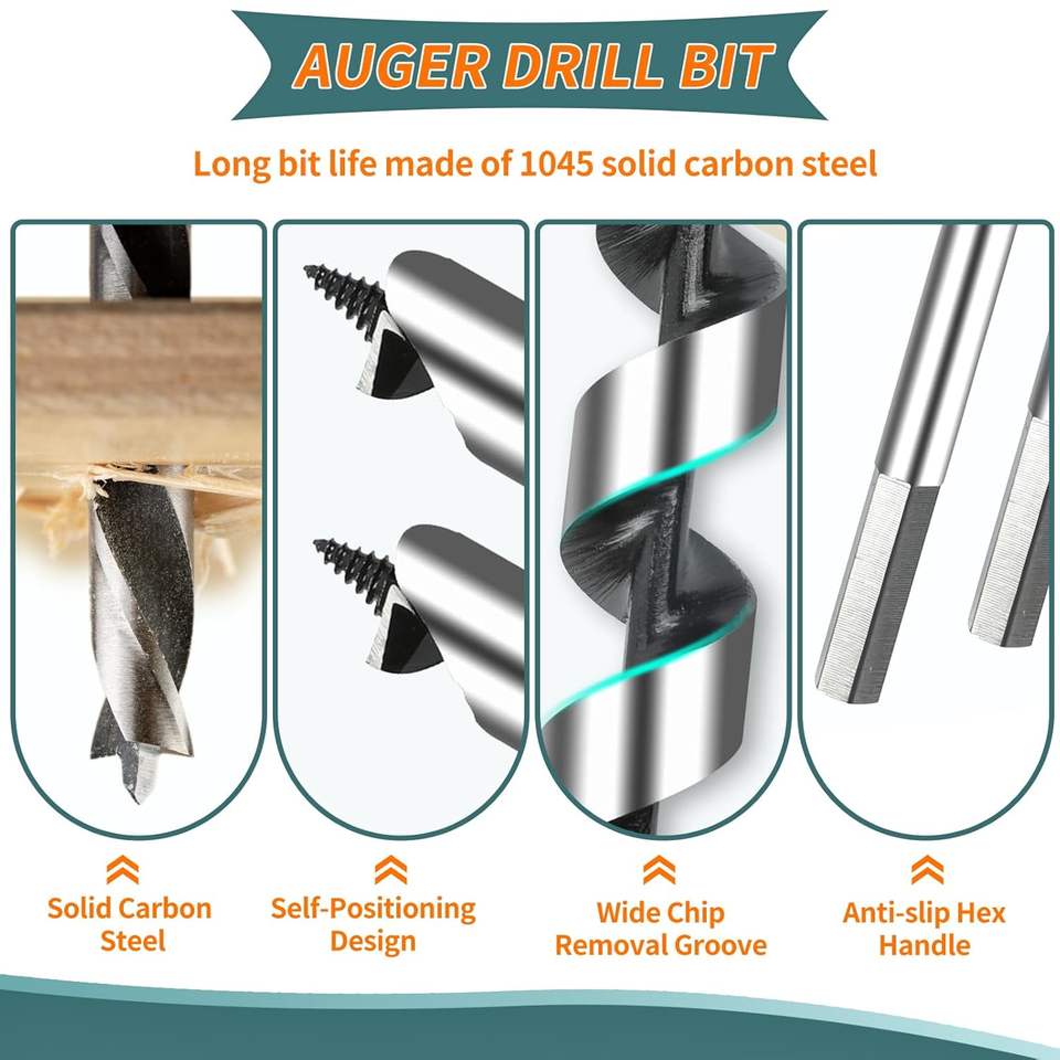 ชุดดอกสว่านเจาะไม้เหล็กกล้าคาร์บอนสูง ปี 2026 ขนาด 12 นิ้ว พร้อมก้านหกเหลี่ยมขนาด 1/4" - 7/8"