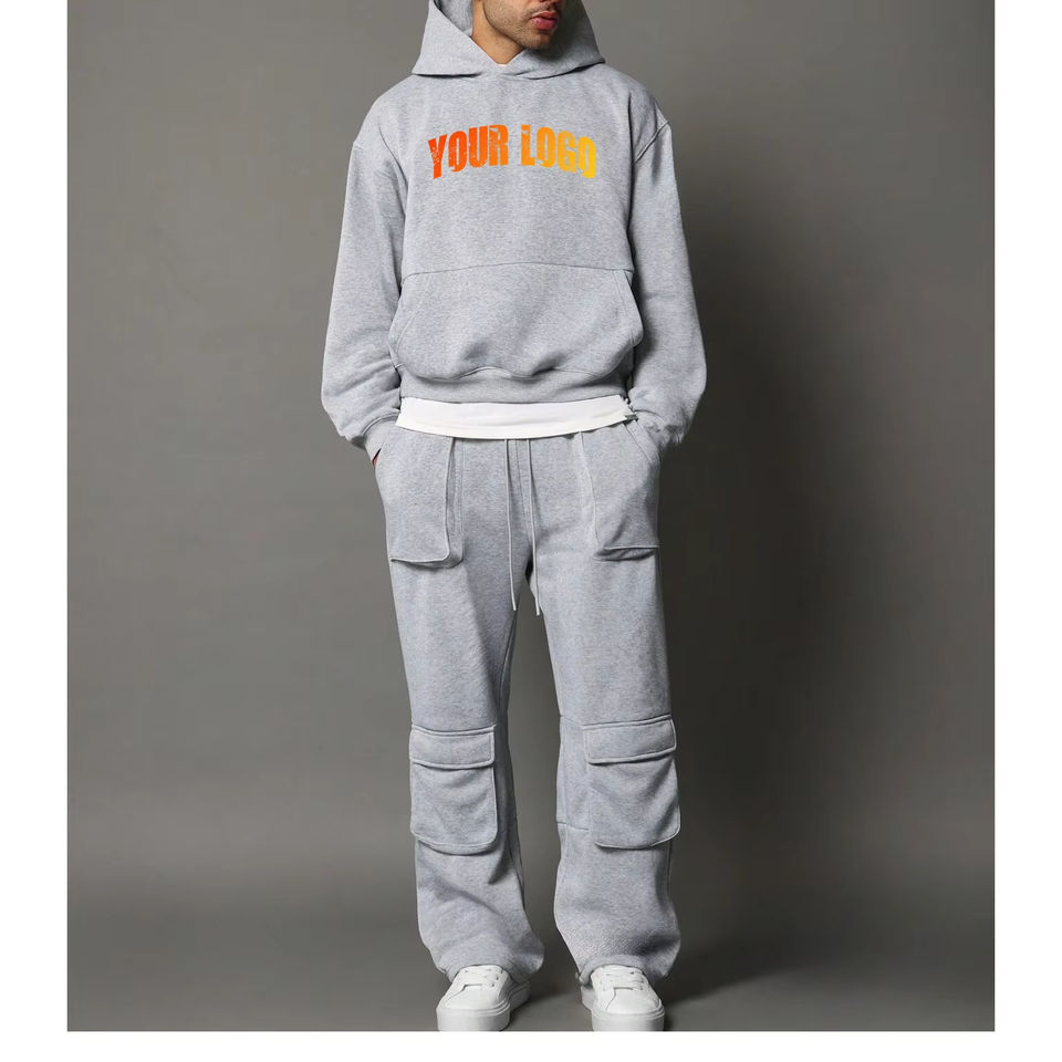 ชุดวอร์มฤดูหนาวผู้ชายแบบลำลอง คุณภาพสูง ปี 2026 ผลิตจากโพลีเอสเตอร์ 100% ระบายอากาศได้ดี ลายพิมพ์เรียบง่าย กางเกงคาร์โก้ ชุดเซ็ตสำหรับทุกเพศ