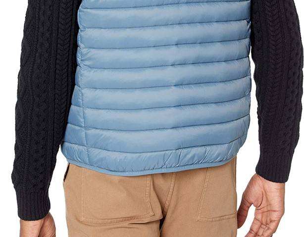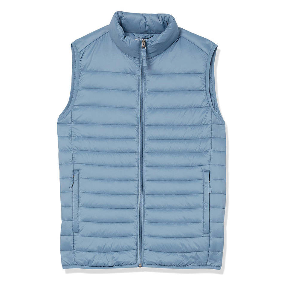 เสื้อกั๊กพัฟเฟอร์บุใยฝ้ายคุณภาพสูง ปี 2026 สีฟ้าอ่อน คอตั้ง แขนกุด สำหรับผู้ชาย