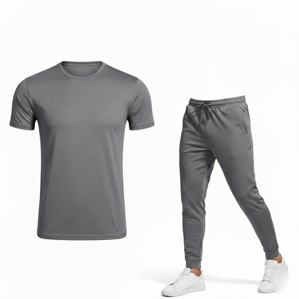 ชุดออกกำลังกายฤดูร้อนแบบเรียบง่ายคุณภาพสูงปี 2026 แห้งเร็ว ระบายอากาศได้ดี เป็นมิตรกับสิ่งแวดล้อม เสื้อยืดและกางเกงจ็อกเกอร์สำหรับทุกเพศ