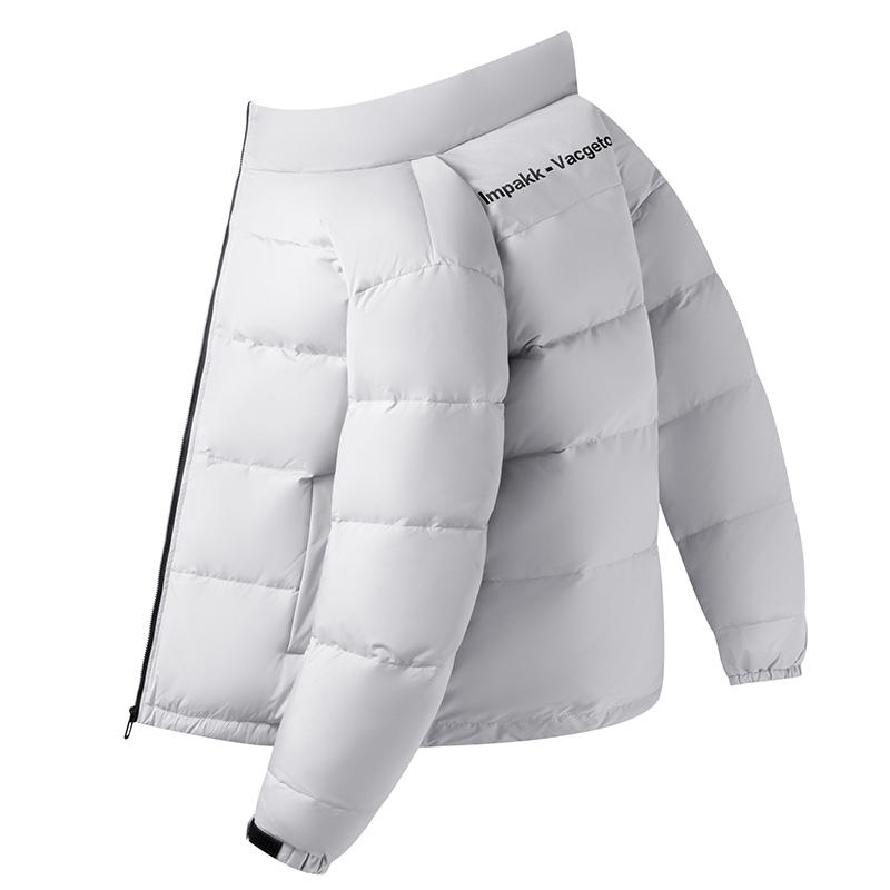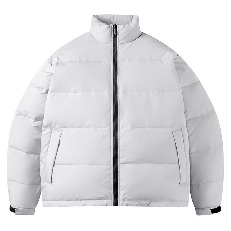 เสื้อแจ็คเก็ตดาวน์สีพื้นคุณภาพสูงปี 2026 ทรงหลวม ไซส์ใหญ่ กันลม อุ่นสบาย