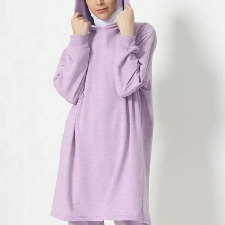 ชุดวอร์มผู้หญิงแขนยาวคลุมทั้งตัว ผ้าโพลีเอสเตอร์/คอตตอน น้ำหนักเบา ระบายอากาศได้ดี คุณภาพสูง ปี 2026 สไตล์มุสลิมสุภาพเรียบร้อย ขายดี