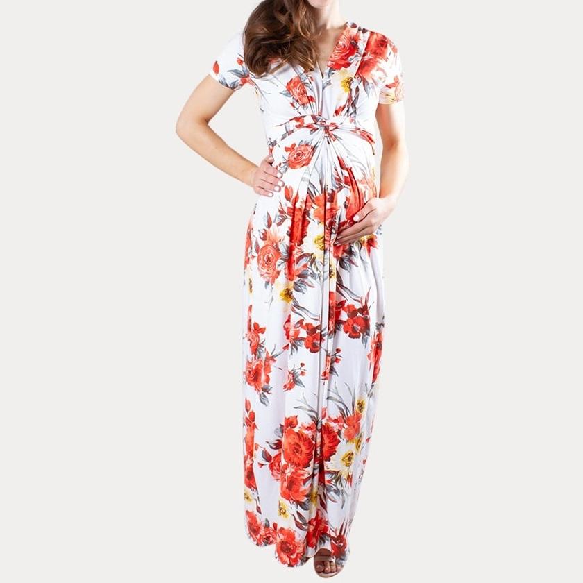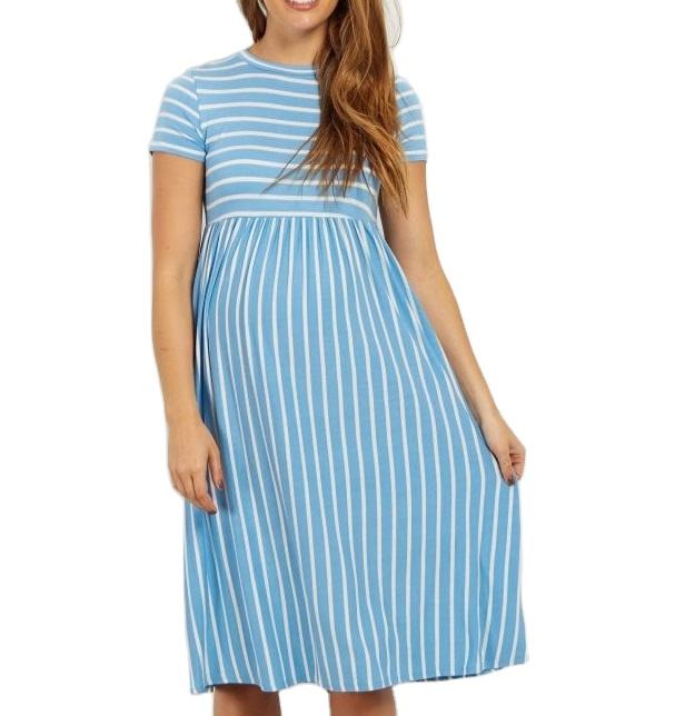 ชุดคลุมท้องคุณภาพสูงสำหรับผู้หญิง ปี 2026 แบบเดรสสั้นแขนสั้นลายทาง ชุดคลุมท้องสำหรับให้นมบุตรแบบเรียบ