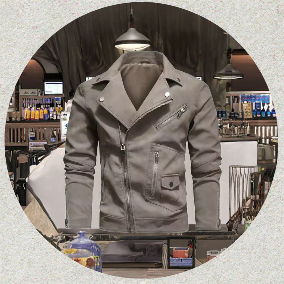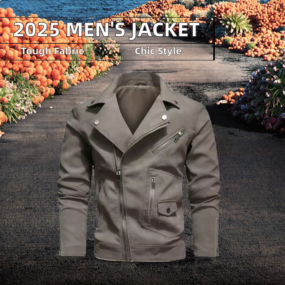 แจ็คเก็ตหนัง PU ผ้าแคนวาสสำหรับผู้ชาย สไตล์นักขี่มอเตอร์ไซค์ รุ่น High Street ปี 2026 สำหรับฤดูใบไม้ร่วงและฤดูหนาว ปิดด้วยซิป ความยาวสั้น โลโก้ด้านหน้า รับผลิตแบบ OEM
