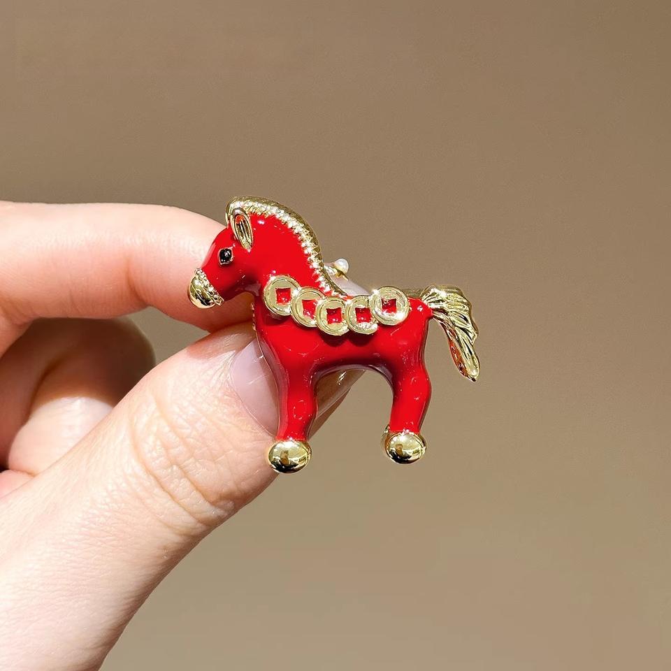 เข็มกลัดรูปม้าปี 2026 สไตล์เรโทร ประดับคริสตัลและเพชรเทียม ตัวเข็มกลัดทำจากโลหะผสม ชุบทองและเงิน เหมาะสำหรับงานแต่งงาน งานหมั้น งานเลี้ยง ของขวัญสำหรับทุกเพศ