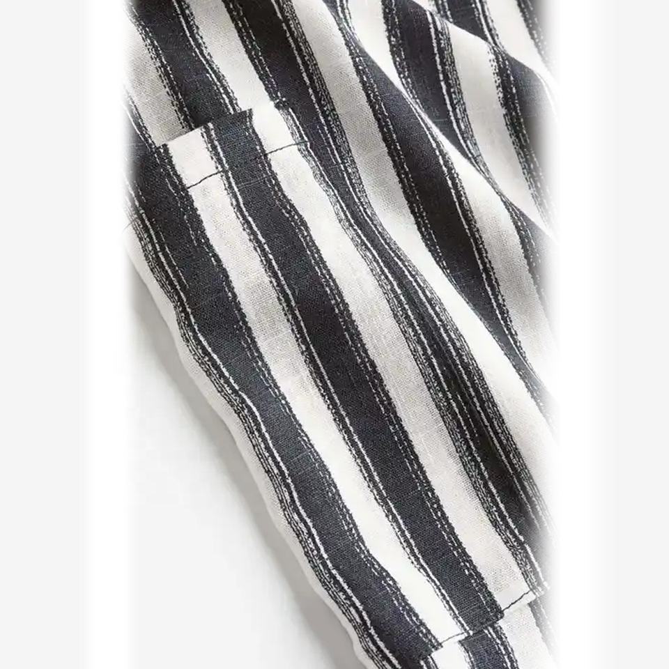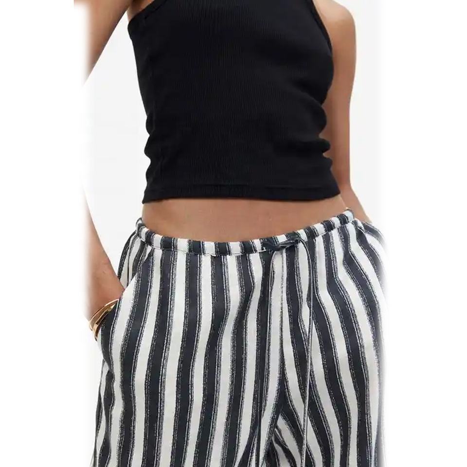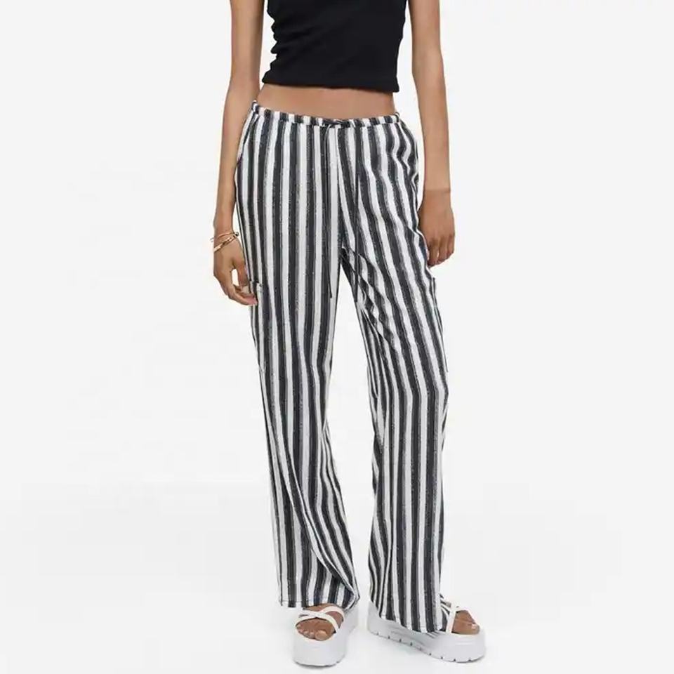 กางเกงขายาวทรงขาบานผ้าฝ้ายสำหรับผู้หญิง รุ่นขายดีปี 2026 ระบายอากาศได้ดี แฟชั่น ทันสมัย สีดำ-ขาว เอวยางยืด มีเชือกผูก ปรับขนาดได้ มีกระเป๋าแบบสั่งทำพิเศษ