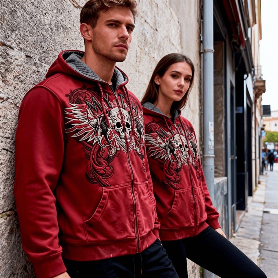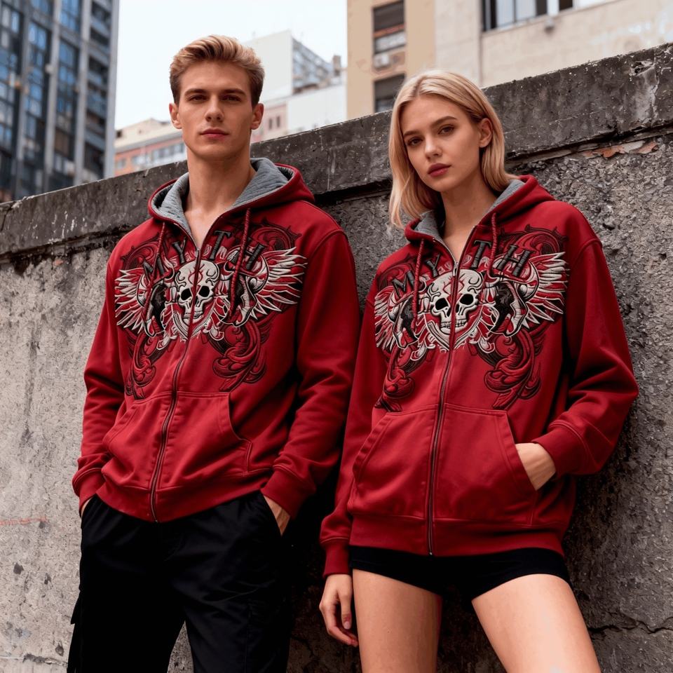 เสื้อฮู้ดดี้ทรงโอเวอร์ไซส์แบบซิป ยูนิเซ็กส์ สไตล์วินเทจ ล้างสีแบบอเมริกัน สตรีทแวร์ ลายกราฟิกหัวกะโหลกปีกนก คอนทราสต์ โกธิค ลดราคาสุดฮอตประจำปี 2026