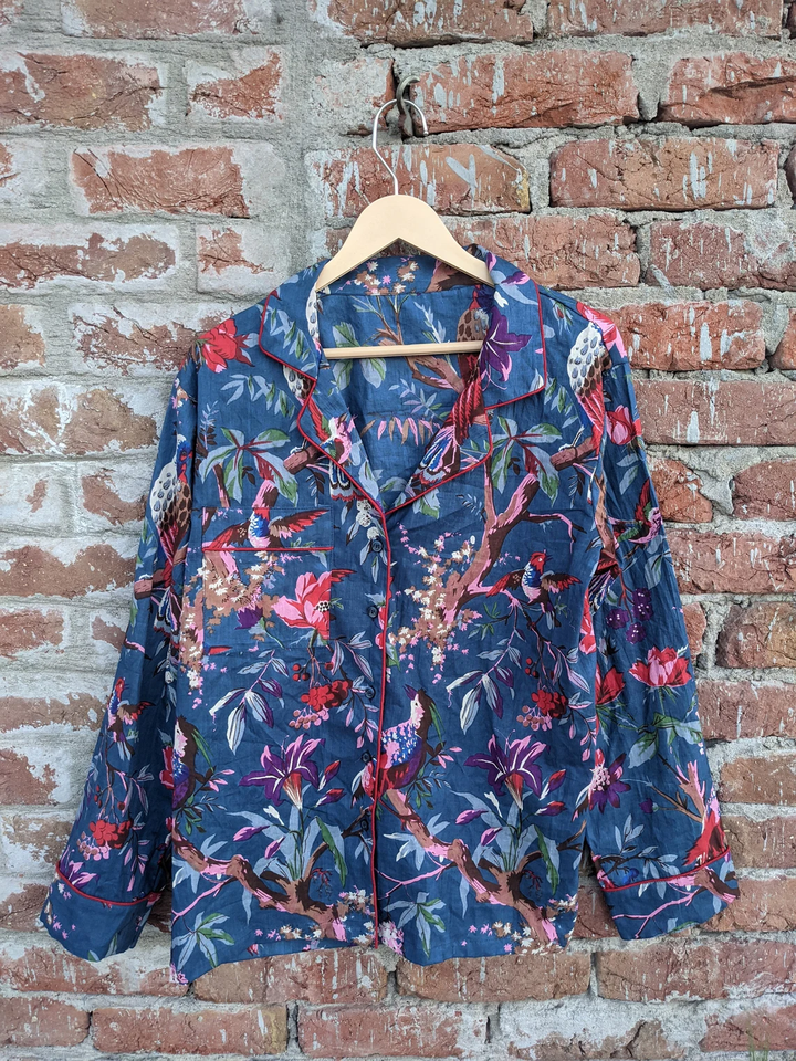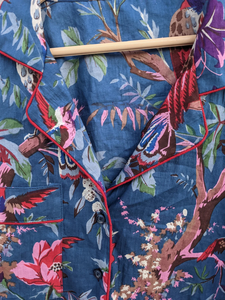 ชุดนอนผ้าฝ้ายพิมพ์ลายบล็อกด้วยมือ 100% สุดนุ่มเบาสบาย พร้อมเชือกผูกเอวสำหรับผู้หญิง ขายดีประจำปี 2026