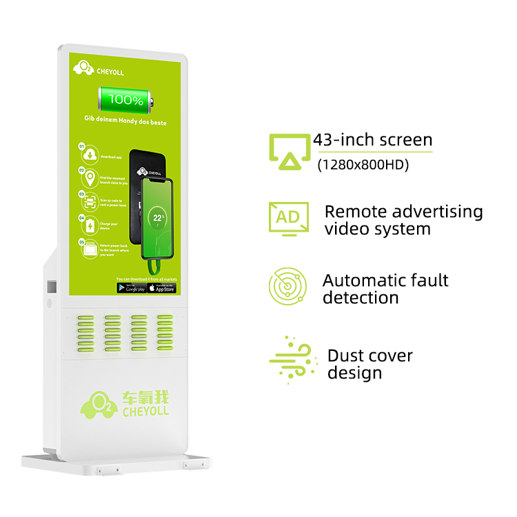สถานีชาร์จแบตสำรองมือถือแบบตั้งพื้น รุ่นขายดีปี 2026 ขนาด 18-48 ช่อง ความจุ 5000mAh พร้อมจอโฆษณา แบตสำรองขนาดใหญ่