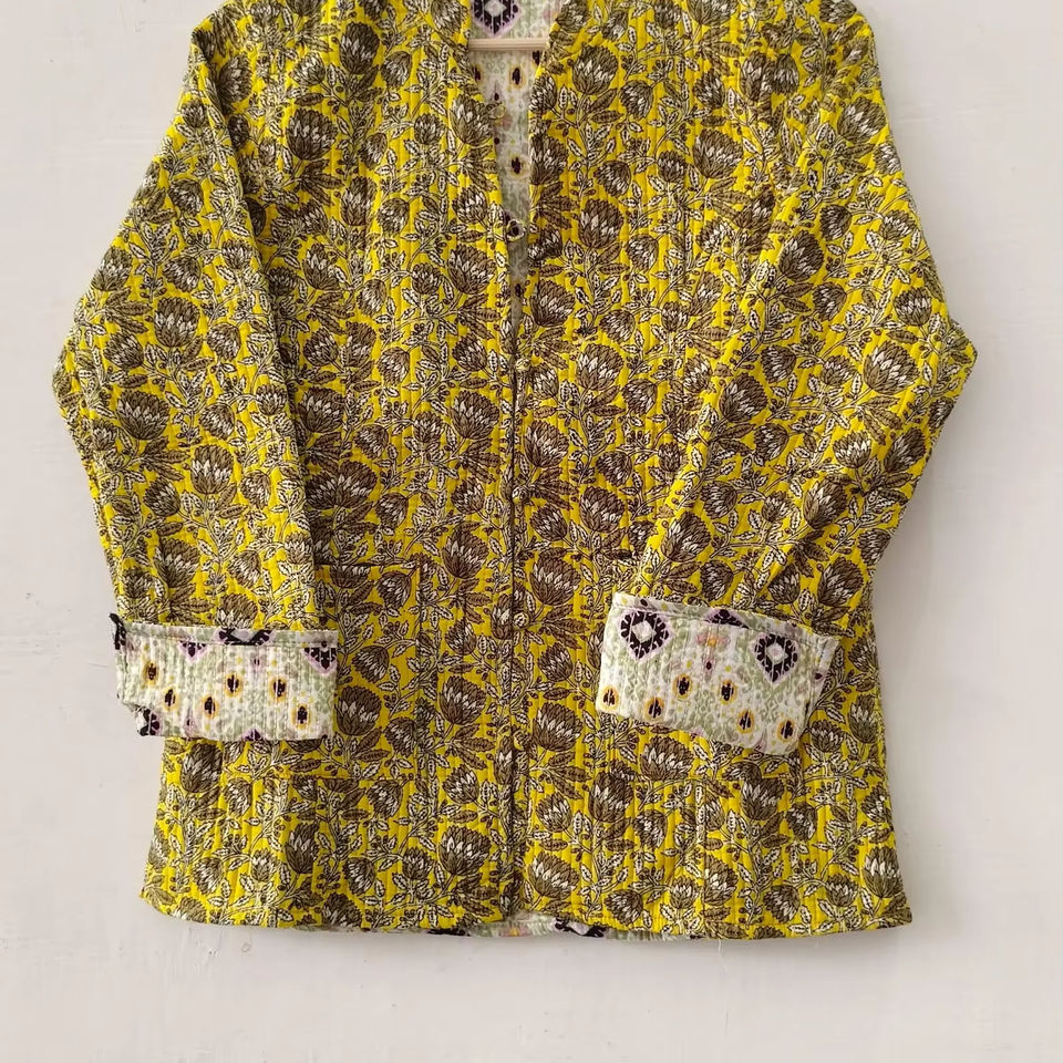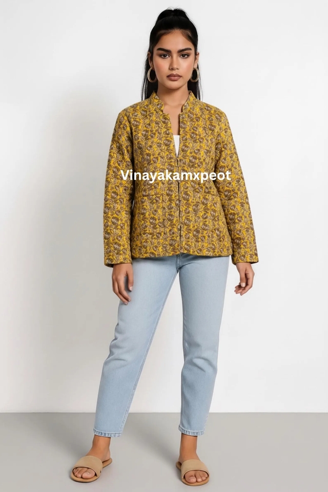 เสื้อโค้ทไหมพรมผ้าฝ้ายสไตล์โบฮีเมียนอินเดียลายควิลท์ ขายดีประจำปี 2026 เสื้อแจ็คเก็ตวินเทจพิมพ์ลายฟล็อกทำมือ ราคาโรงงาน