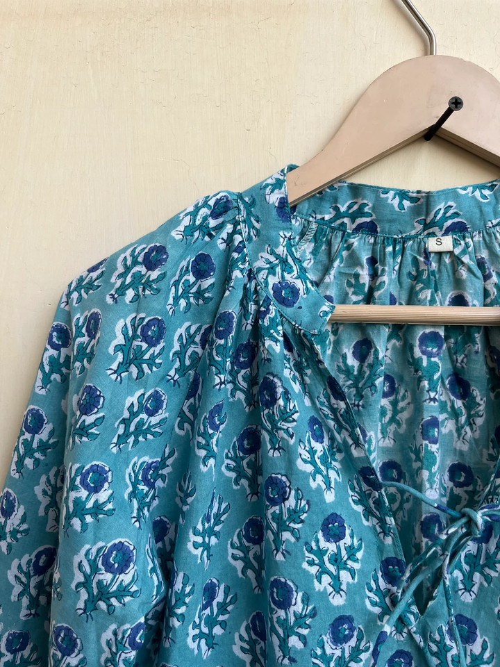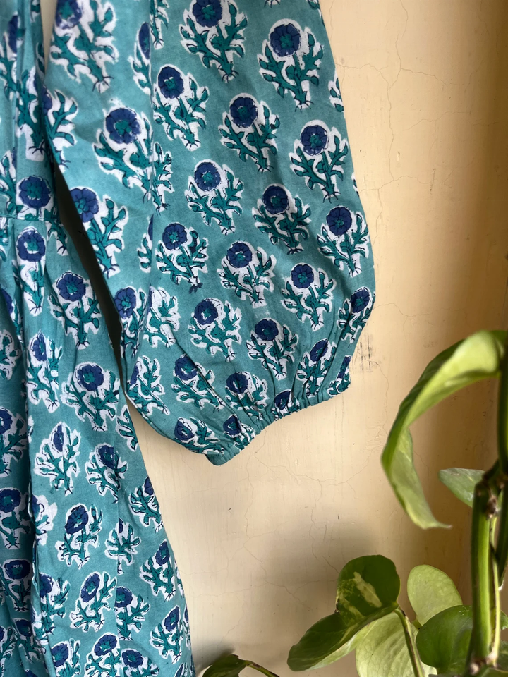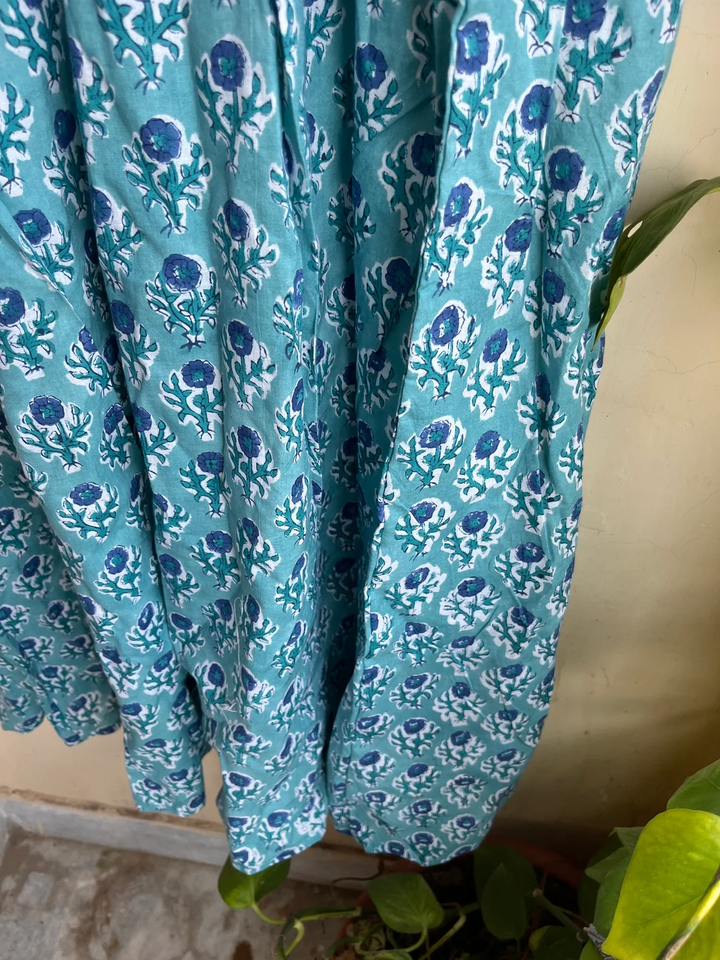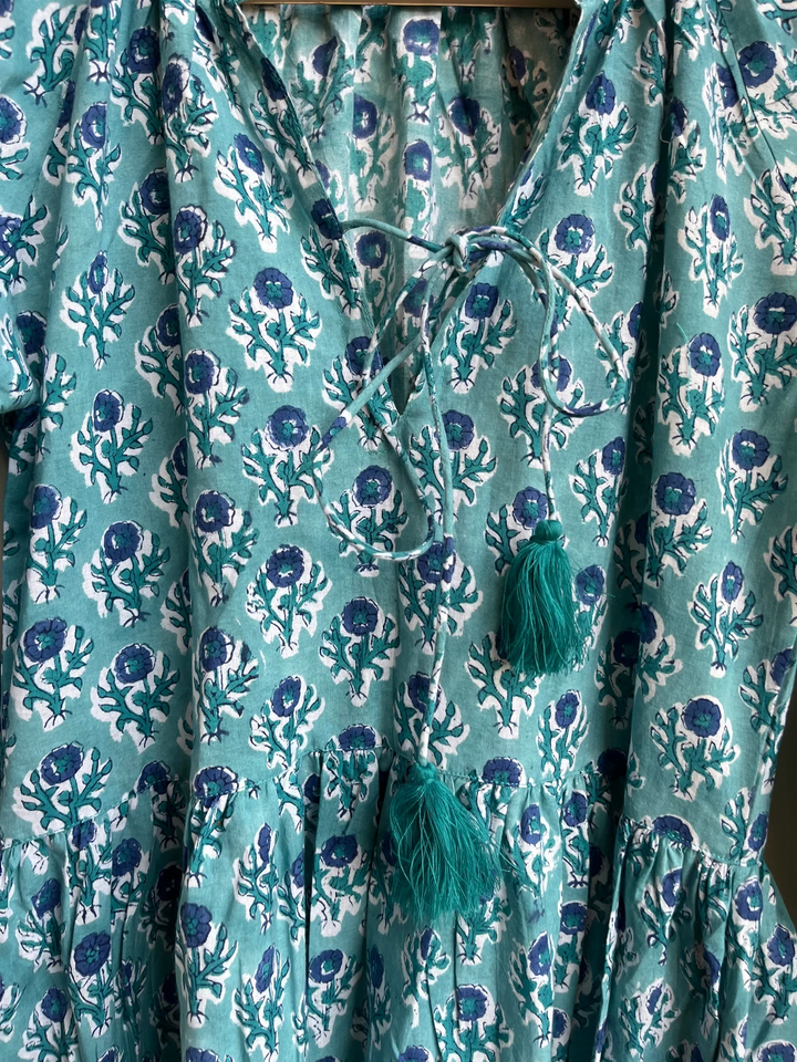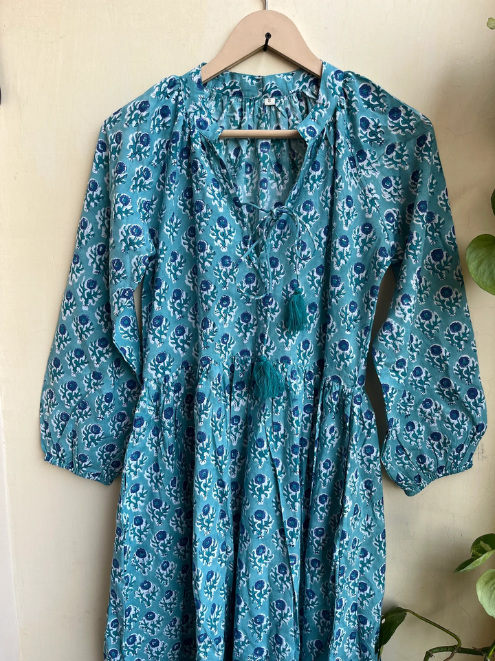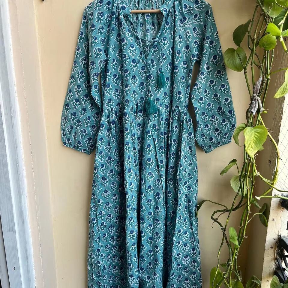 เดรสยาวผ้าฝ้ายขายดีปี 2026 คอวี แขนยาว ปักลายดอกไม้ พิมพ์ลายบล็อก ผ้าฝ้ายอินเดีย ชุดลำลองแบบยาว