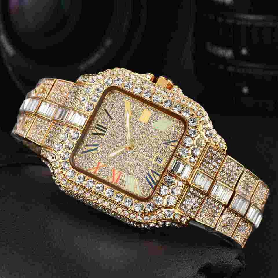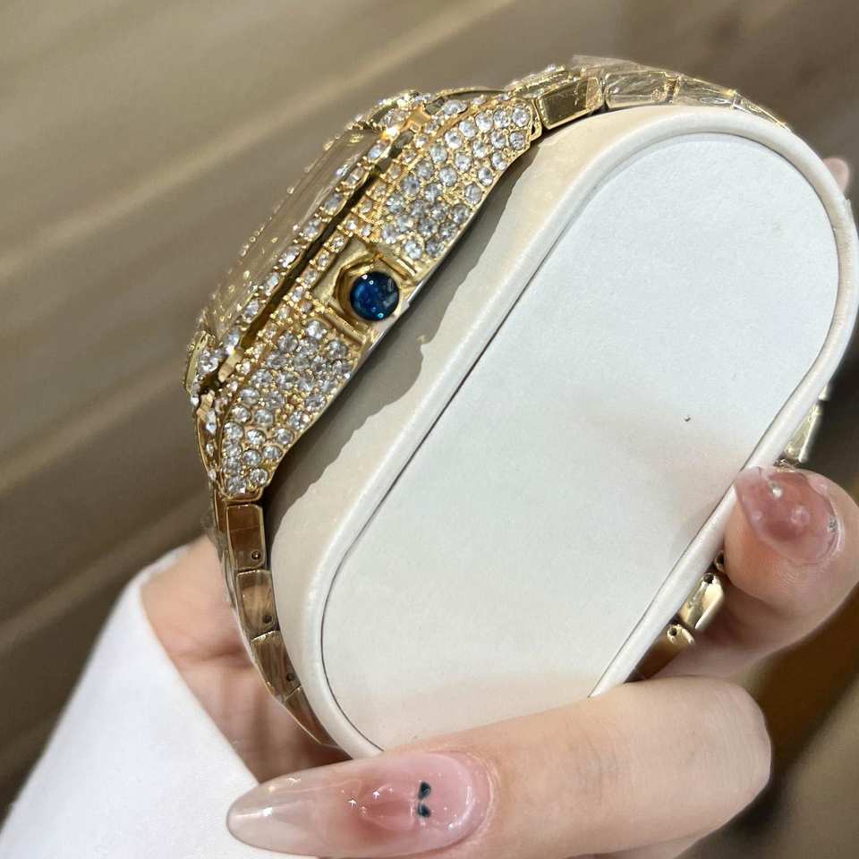 นาฬิกาควอตซ์ผู้ชายประดับเพชรเต็มเรือน รุ่นคลาสสิกทรงเหลี่ยม ขายดีประจำปี 2026 พร้อมกล่องแท้