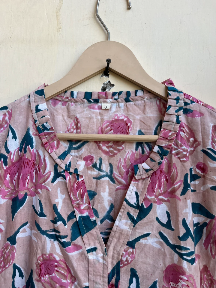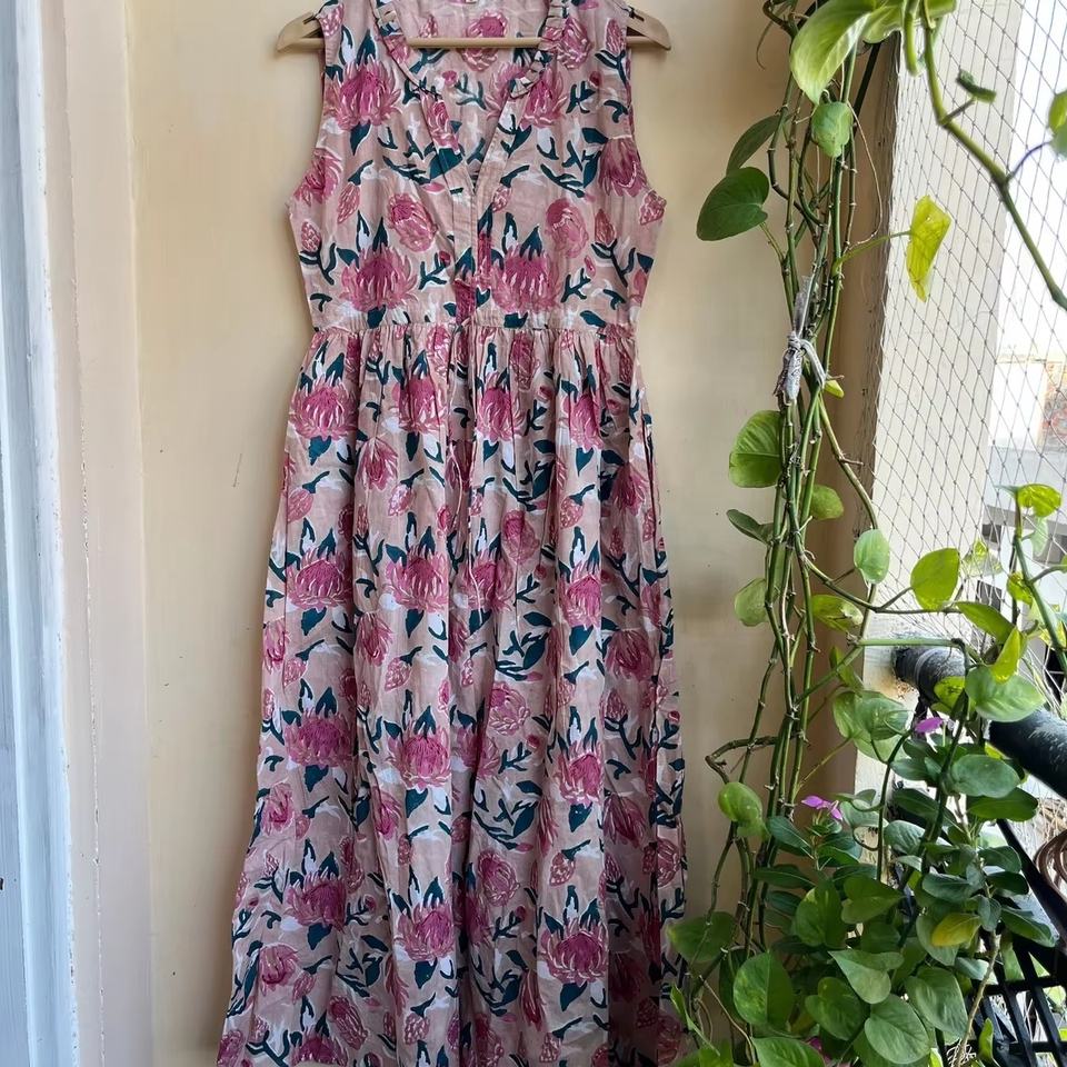 ชุดเดรสอินเดียผ้าฝ้ายพิมพ์ลายดอกไม้แบบแฮนด์บล็อก 100% สไตล์ลำลอง ชุดยาวสำหรับผู้หญิง ขายดีประจำปี 2026