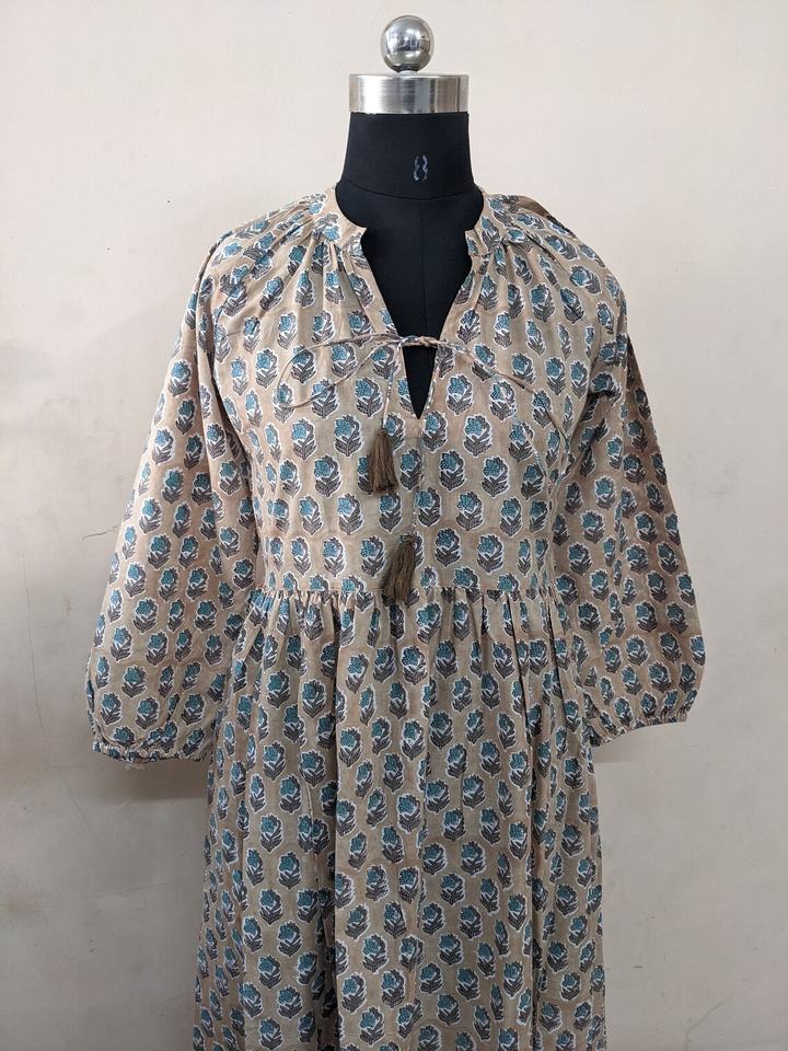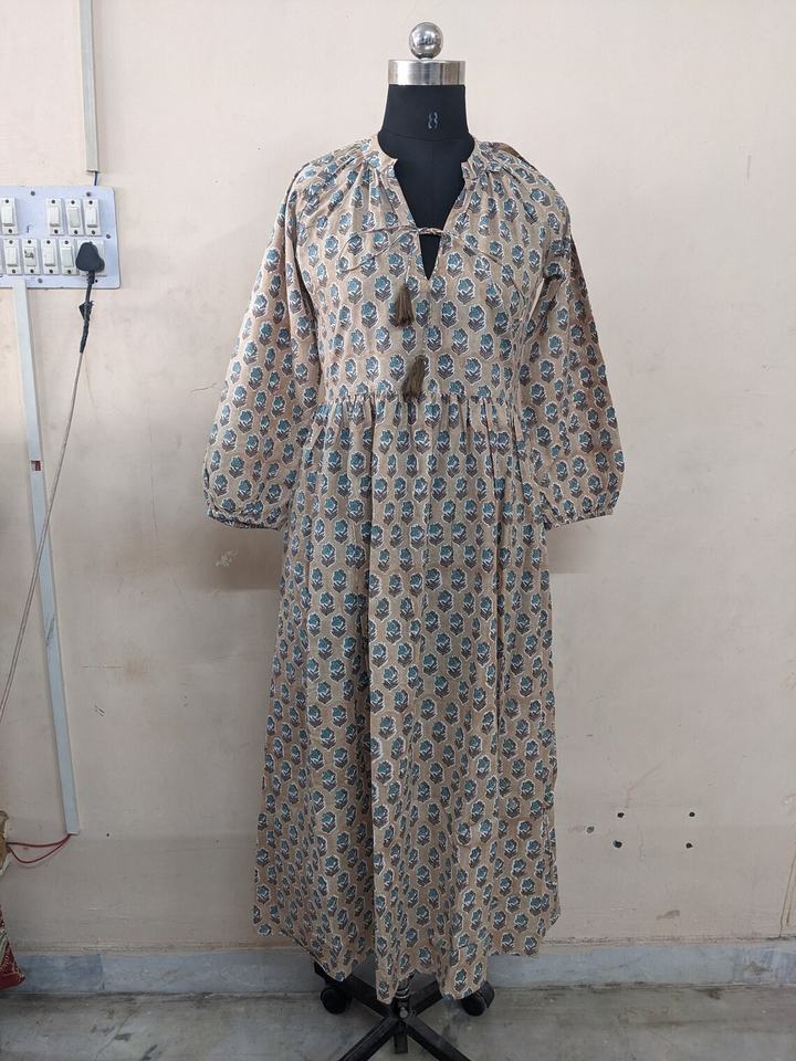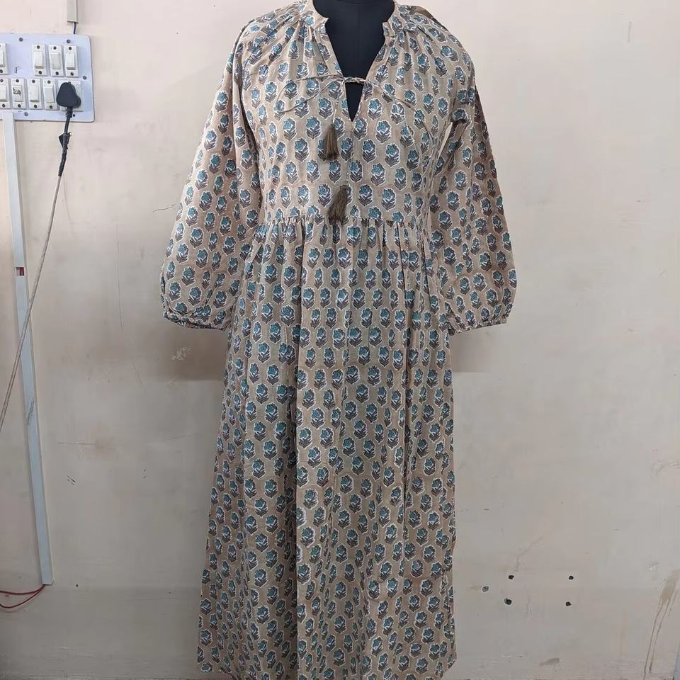 ชุดเดรสผ้าฝ้ายอินเดียพิมพ์ลายด้วยมือ ขายดีประจำปี 2026 ผ้าฝ้ายแท้ 100% ลายดอกไม้ สวมใส่สบายๆ ชุดยาว ราคาโรงงาน
