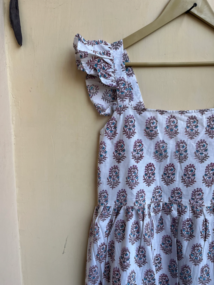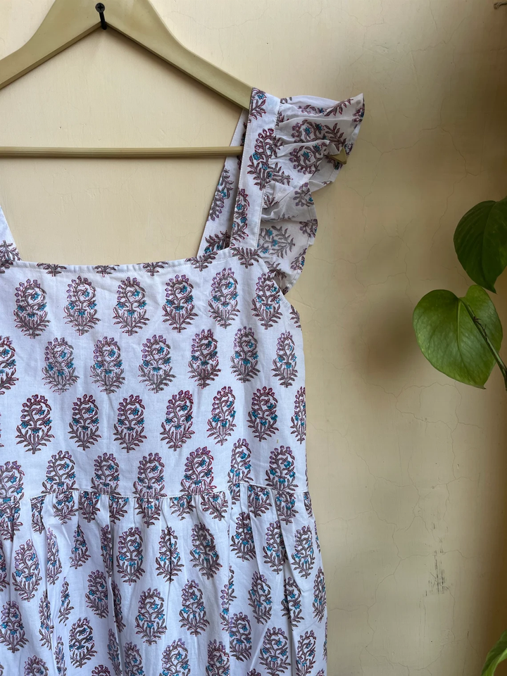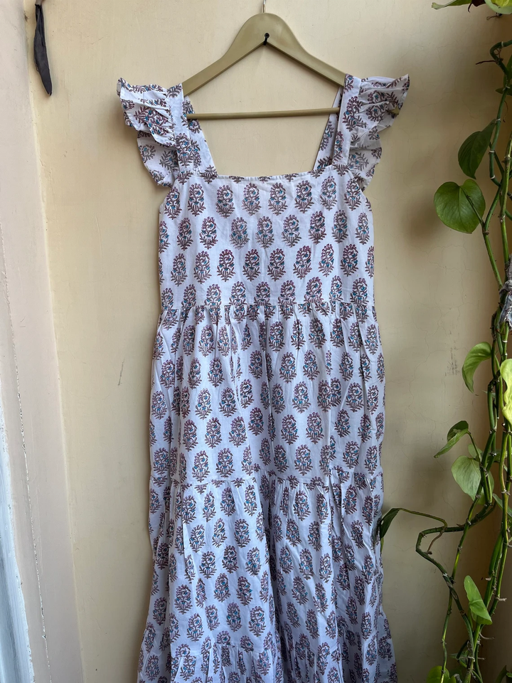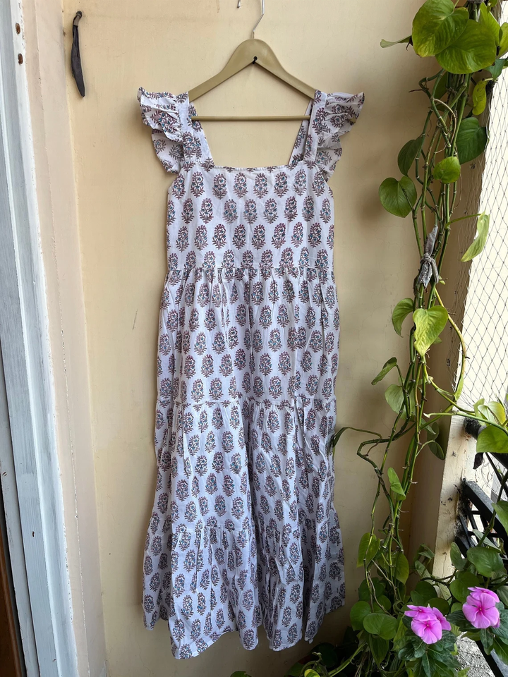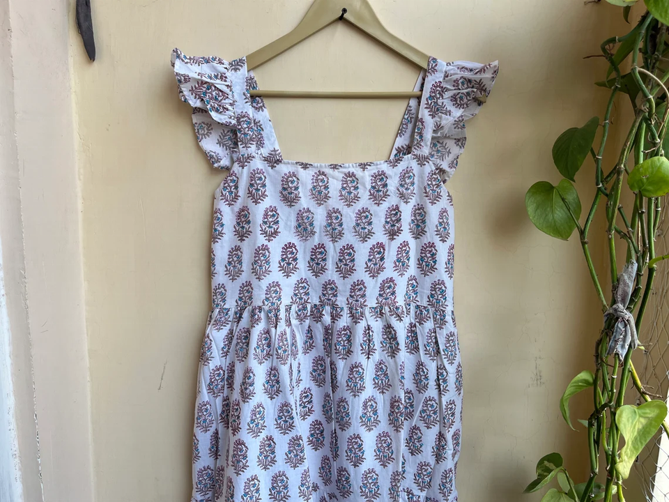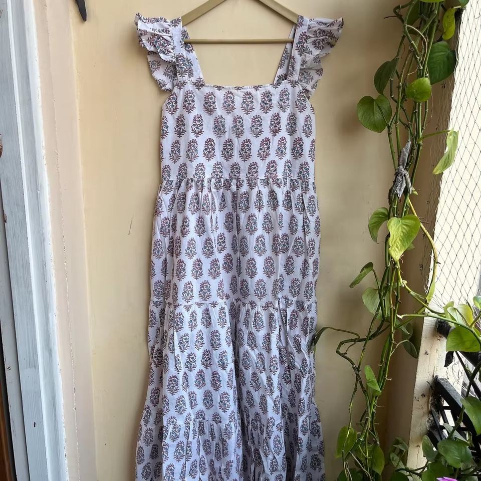 เดรสยาวพิมพ์ลายบล็อกผ้าฝ้ายอินเดียขายดีปี 2026 แบบไม่มีแขน คอเหลี่ยม ลายดอกไม้ ราคาโรงงาน