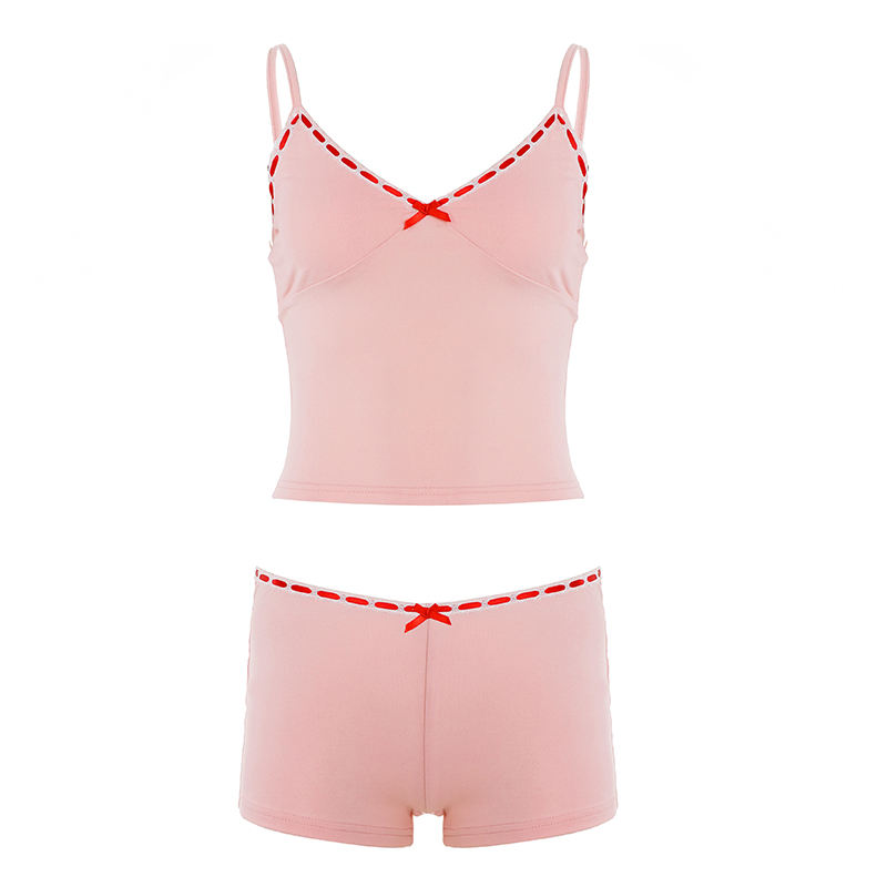 ชุดเซ็ตเสื้อสายเดี่ยวลูกไม้ตัดต่อสุดเซ็กซี่สไตล์ Y2K และกางเกงขาสั้นสำหรับผู้หญิง ขายดีประจำปี 2026 ขายส่ง