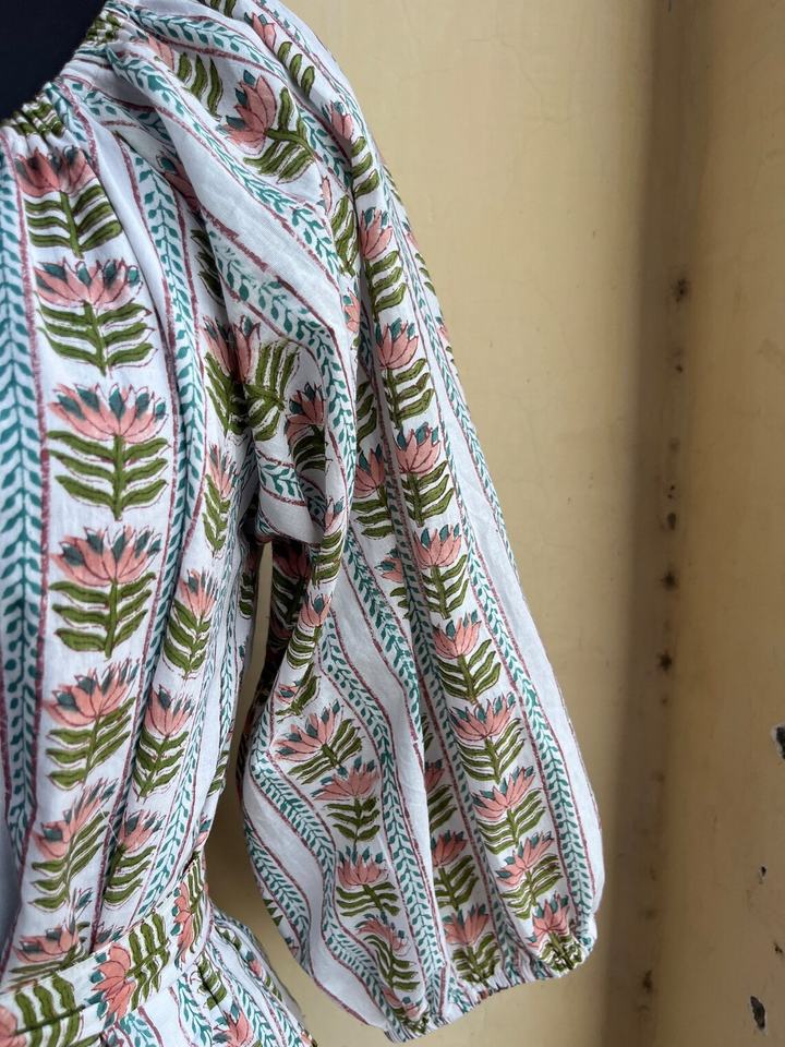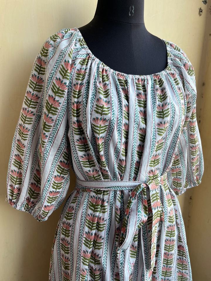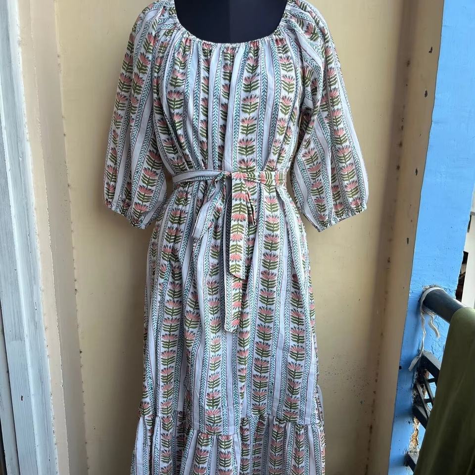 เดรสยาวพิมพ์ลายบล็อกขายดีปี 2026 แขนยาว คอกลม ผ้าฝ้าย ราคาโรงงาน