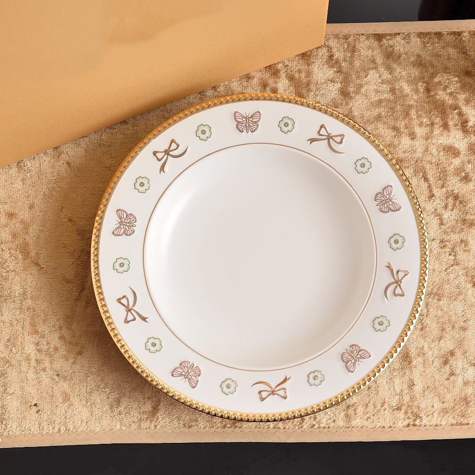 คำสำคัญ:ชุดจานชามลายขอบทองลายผีเสื้อสุดหรูทำจากโบนไชน่า