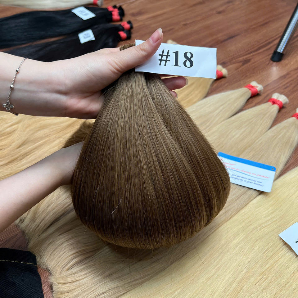 ต่อผมแท้แบบเส้นตรงสีธรรมชาติ ปี 2026 แบบไหม ไม่หลุดร่วง ไม่พันกัน จัดเรียงเกล็ดผม 100% ขายส่ง