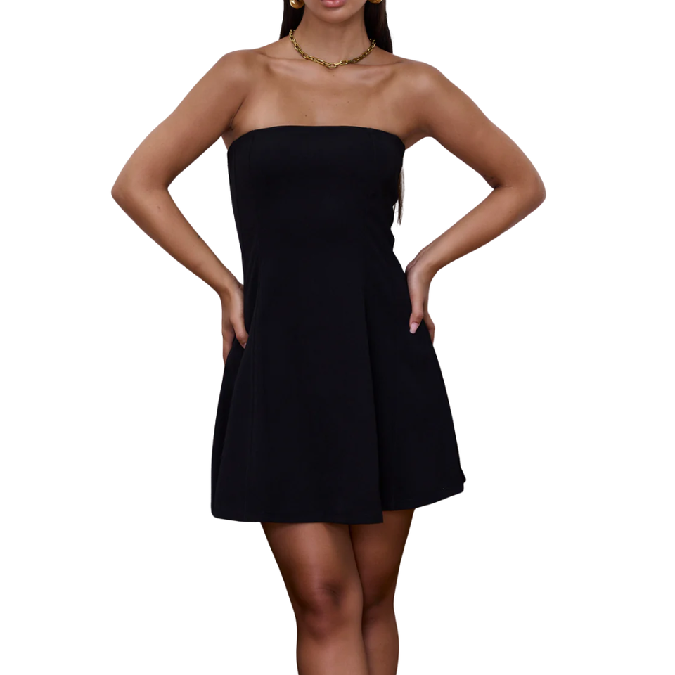 2026เดรสเกาะอกทรงเอแบบมินิยาวสำหรับผู้หญิงสไตล์เรียบง่ายพร้อมโลโก้ด้านหน้าผลิตในเวียดนาม