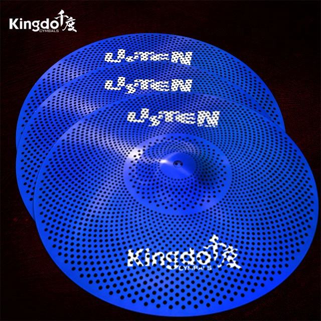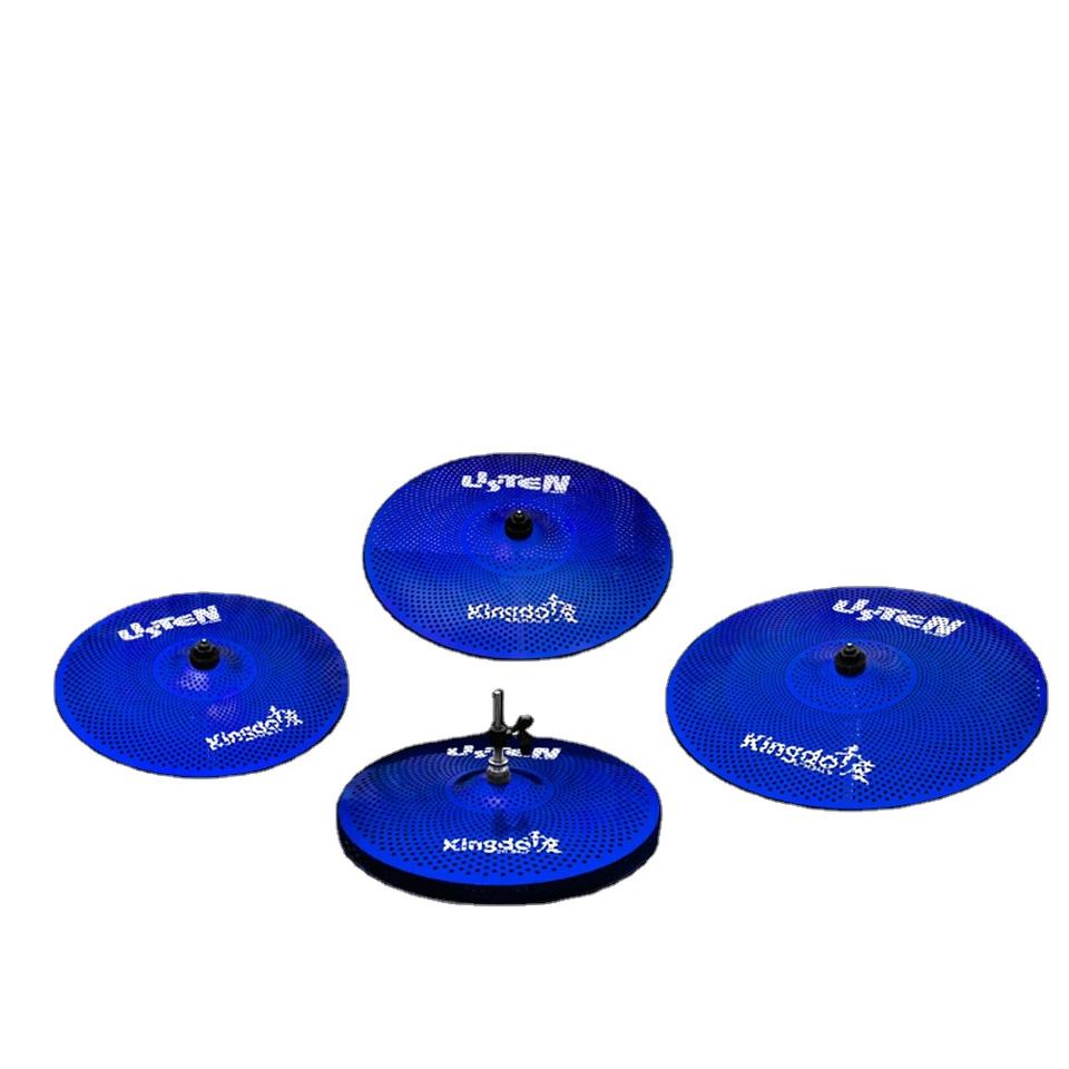 2026 Kingdo ขายตรงจากโรงงาน ราคาถูก 5 ชิ้น ไซม์บัลล์ฝึกซ้อมแบบเงียบ สีน้ำเงิน ขนาดเล็ก ชุบนิกเกิล สำหรับชุดกลอง